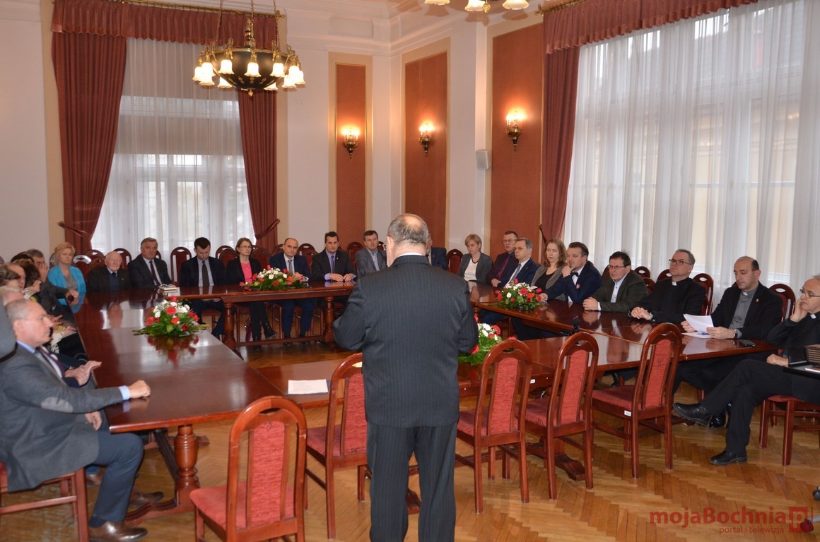 Na zaproszenie Starosty Bocheńskiego Ludwika Węgrzyna w spotkaniu uczestniczyli samorządowcy, przedstawiciele instytucji kultury, organizacji społecznych, kościoła, kopalni soli, związku AK oraz przedsiębiorcy. Obecni byli także przedstawiciele Biura Niepodległa. Wszyscy zgromadzeni mieli okazję posłuchać wykładu gościa specjalnego, Ks. Jana Bartoszka dotyczącego roli kościoła w odzyskaniu niepodległości.