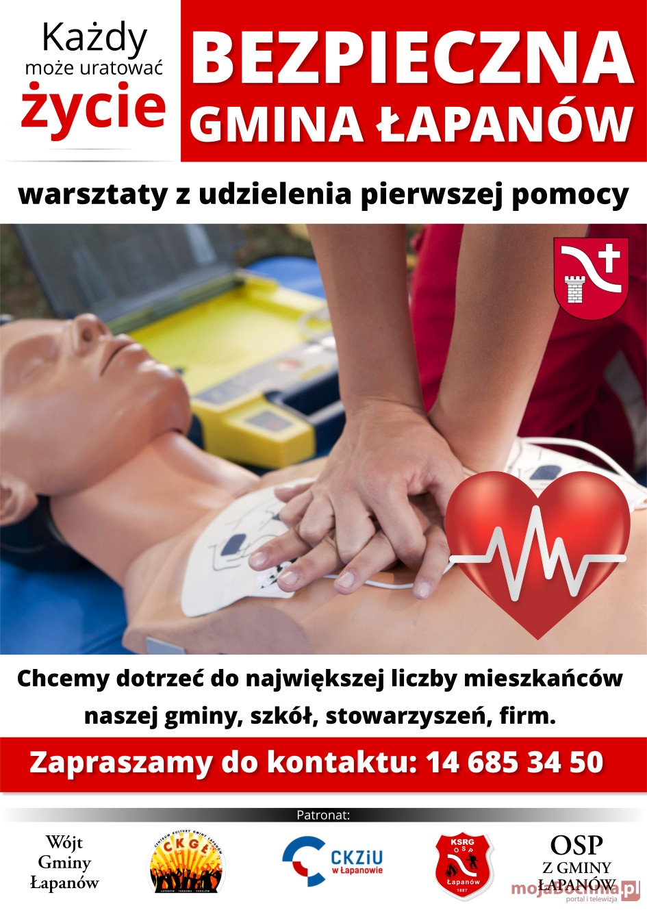 Rozpoczęła się realizacja projektu BEZPIECZNA GMINA ŁAPANÓW – Każdy może uratować życie! Jak zachować się w sytuacji zagrożenia zdrowia i życia? Co zrobić, jeśli jest się świadkiem wypadku drogowego? Coraz więcej osób ma świadomość, jak ważna na co dzień jest znajomość zasad udzielania pierwszej pomocy. Każdy człowiek, któremu powierza się bezpieczeństwo, zdrowie i życie drugiego człowieka, powinien nieustannie zdawać sobie sprawę z odpowiedzialności, jaka na nim spoczywa.