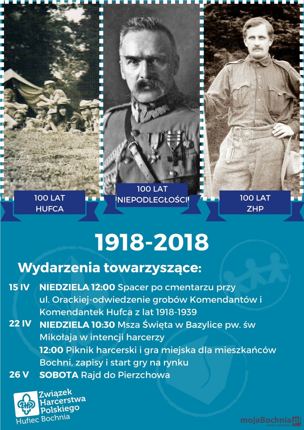 Bocheńscy harcerze i instruktorzy serdecznie zapraszają do wzięcia udziału w wydarzeniach związanych z obchodami setnej rocznicą powstania Hufca ZHP Bochnia.