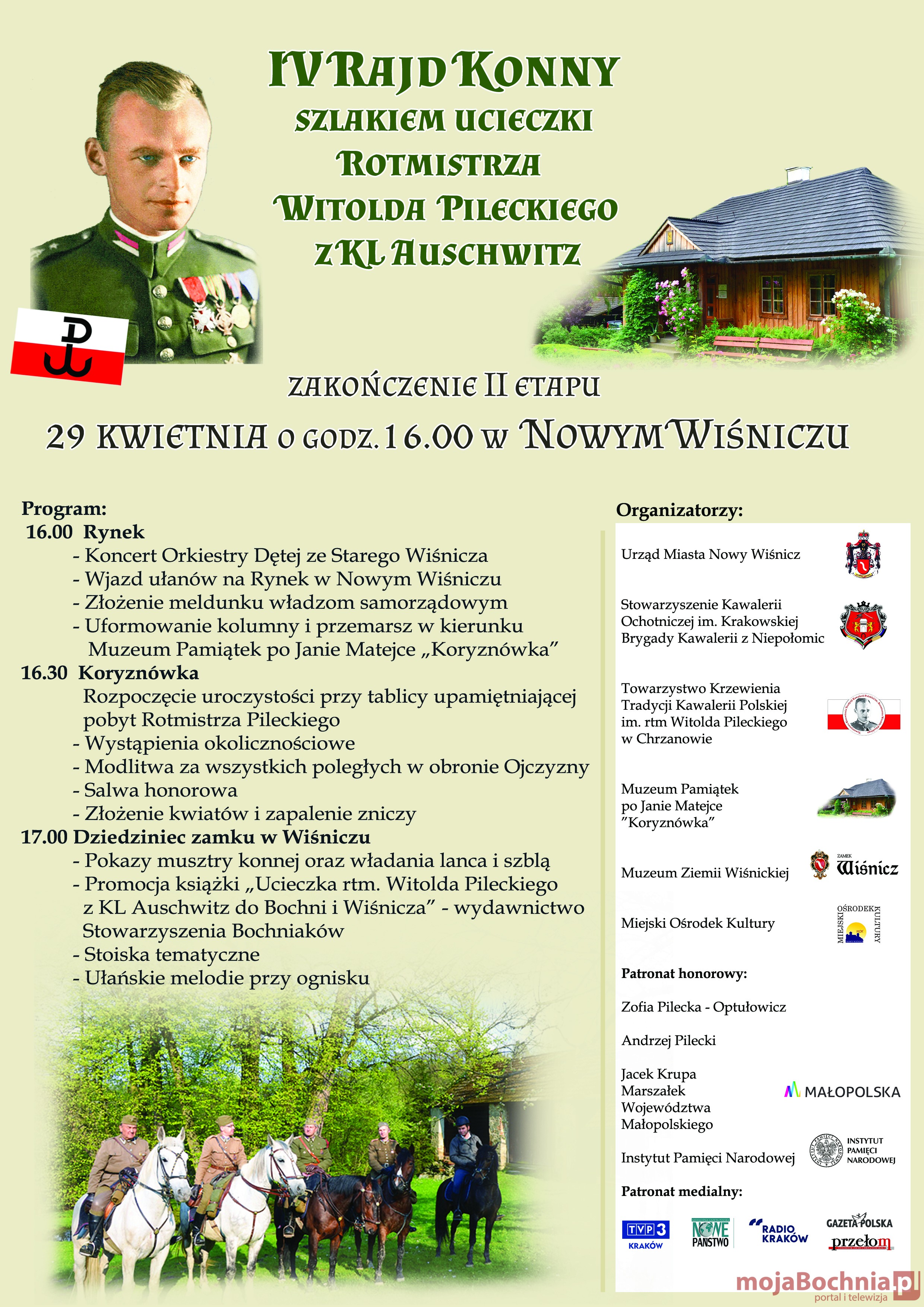 17.00 (Dziedziniec zamku w Wiśniczu) – pokazy musztry konnej oraz władania bronią, promocja książki „Ucieczka rtm. Pileckiego z KL Auschwitz do Bochni i Wiśnicza” – wydawnictwo Stowarzyszenia Bochniaków