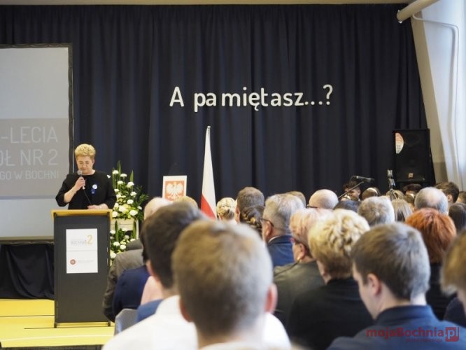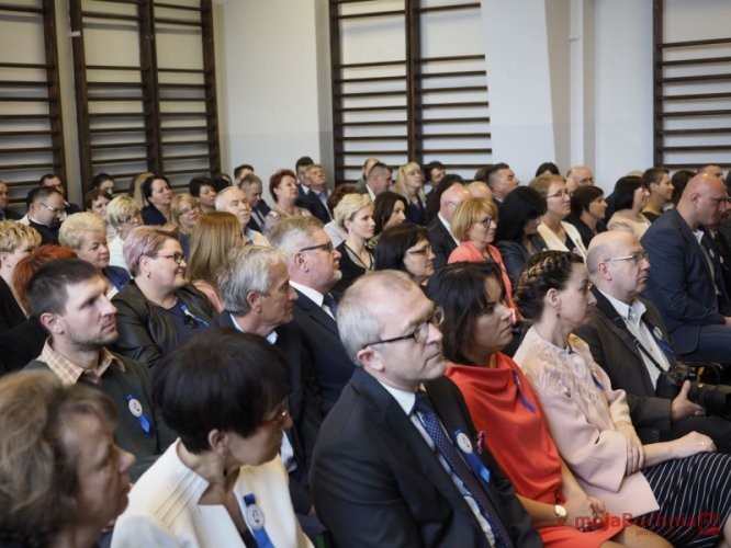 Część oficjalna została zainaugurowana uroczystym wprowadzeniem Sztandaru Szkoły. Dyrektor Szkoły, Anetta Krysiak, powitała wszystkich przybyłych gości. W swoim wystąpieniu, przedstawiała najważniejsze wydarzenia z historii szkoły, a odnosząc się do własnych wspomnień ze szkolnej ławy, wyraziła ogromny szacunek dla byłych Dyrektorów i Nauczycieli.