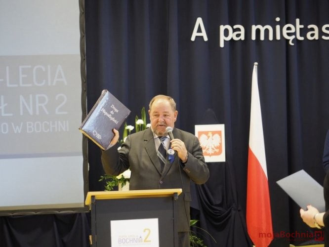 Następnie głos zabrał Stanisław Siadek, Starszy Wizytator Kuratorium Oświaty w Krakowie – Delegatura w Tarnowie, który dostrzegł szczególny związek pomiędzy patronem szkoły – Stanisławem Konarskim, a charakterem kształcenia i wychowania realizowanym w szkole, odczytał również list gratulacyjny od Małopolskiego Kuratora Oświaty.