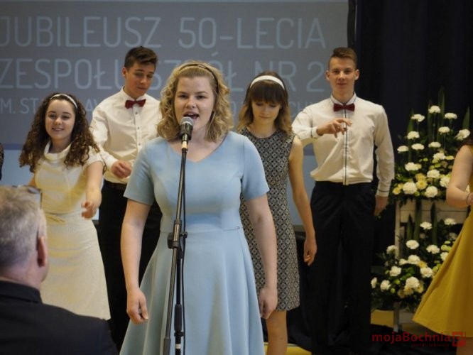 Momentem szczególnym jubileuszu było podziękowanie oraz wręczenie kwiatów byłym i obecnym dyrektorom szkoły. Podziękowaniom towarzyszyła piosenka w wykonaniu Łukasza, absolwenta szkoły oraz Ani i Oskara tegorocznych maturzystów.