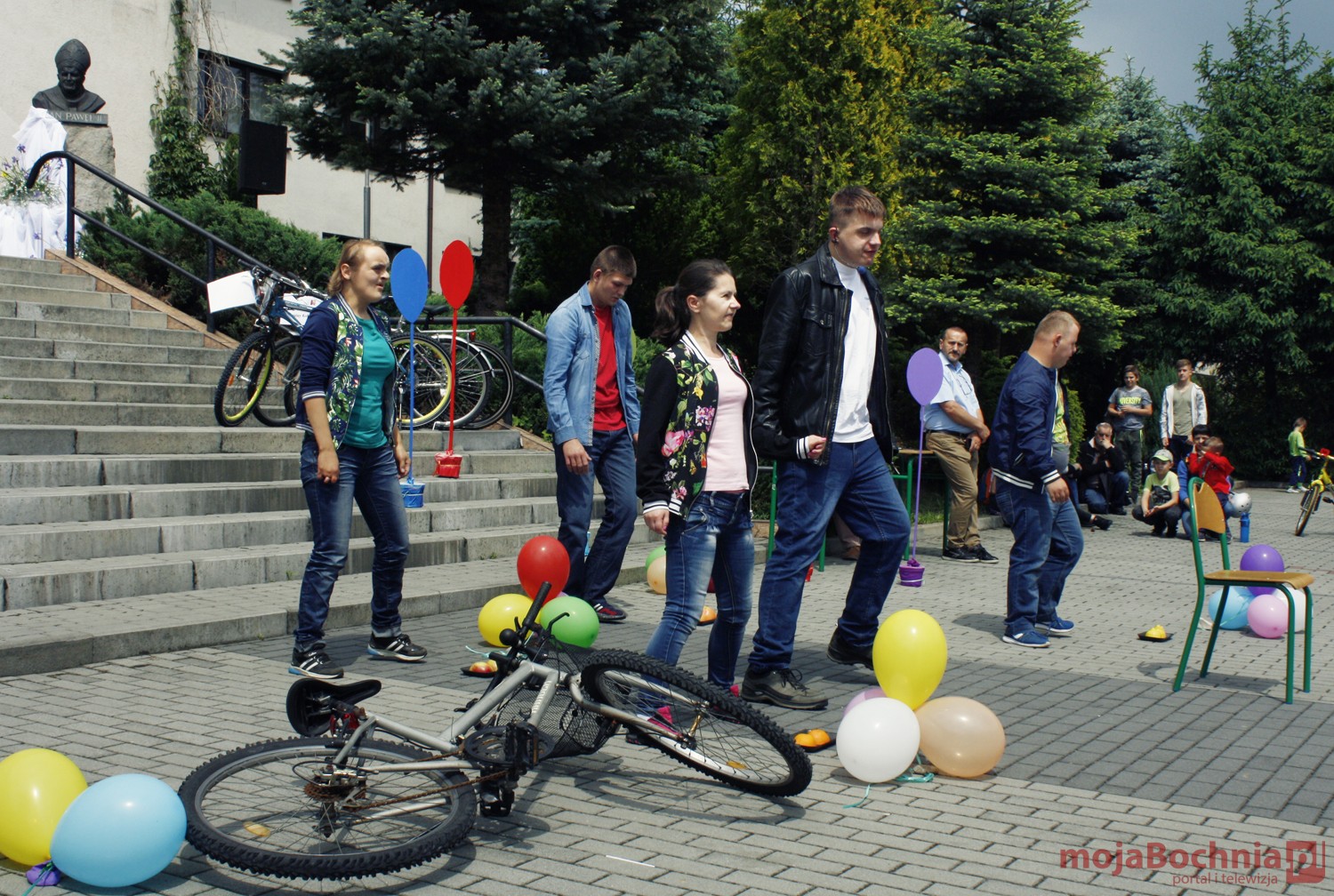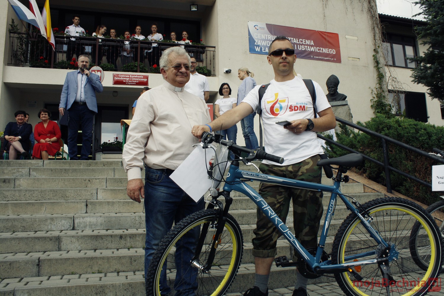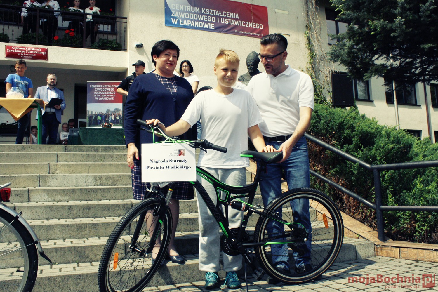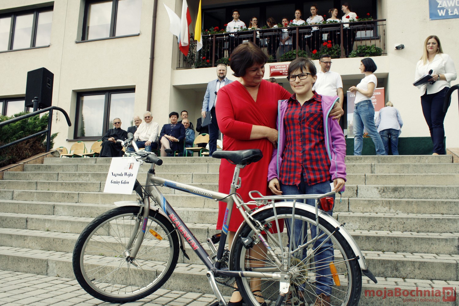 szkolny plac CKZiU w Łapanowie i posileniu się smacznym posiłkiem wędrowcy mogli oklaskiwać występ uczestników WTZ „Otwarte Serca”, a potem z niecierpliwością czekali na losowanie 5 cennych rowerów ufundowanych przez starostów: bocheńskiego i wielickiego, wójtów gminy Łapanów i Gdów oraz ks. Tadeusza Jarzębaka.