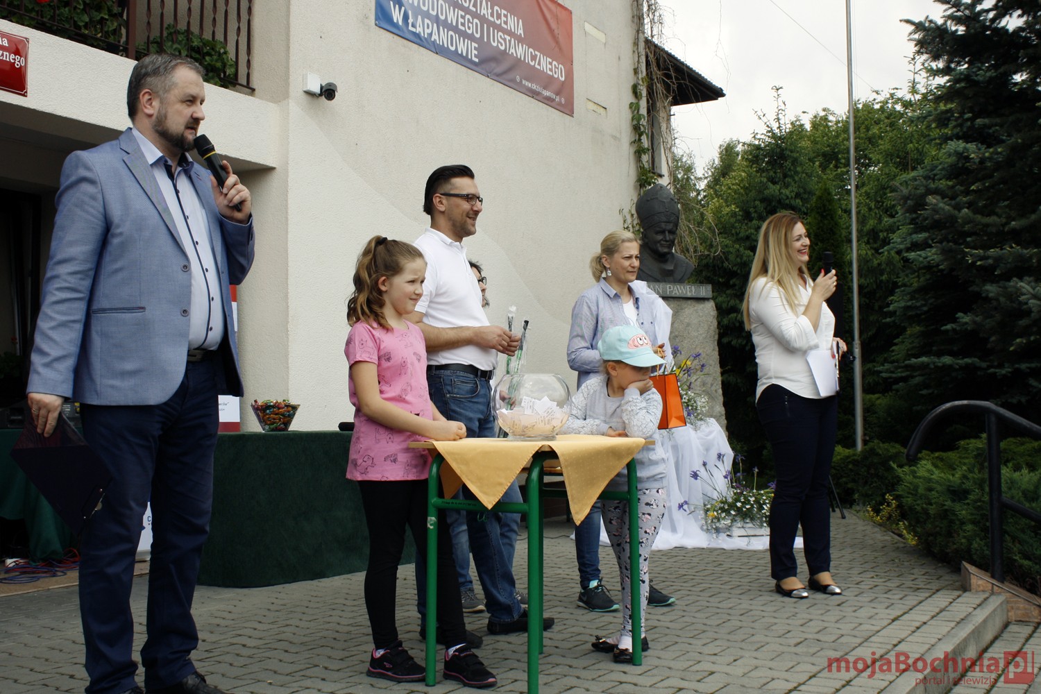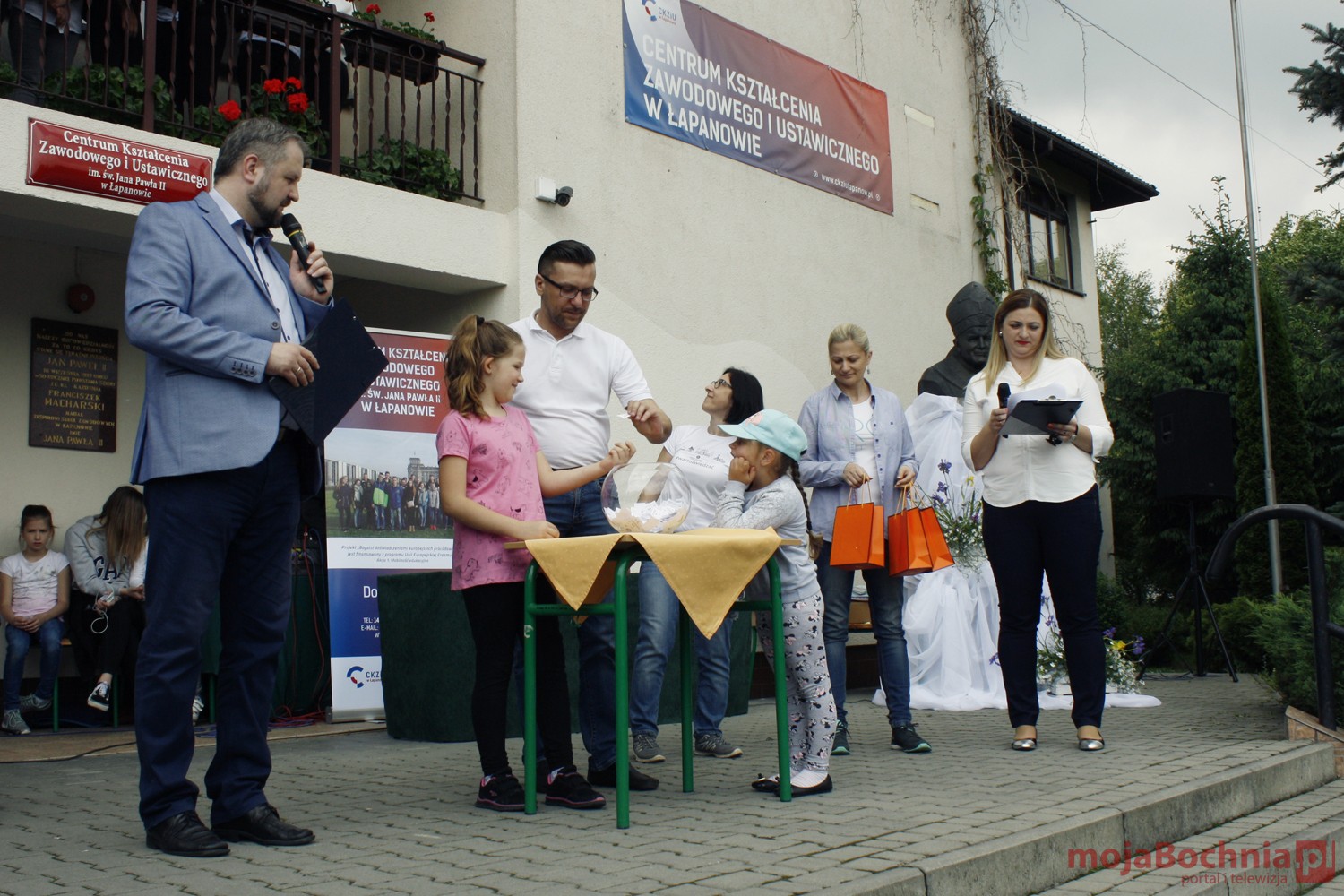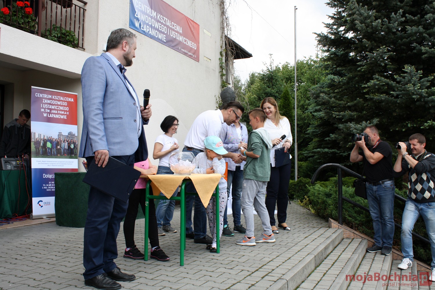 szkolny plac CKZiU w Łapanowie i posileniu się smacznym posiłkiem wędrowcy mogli oklaskiwać występ uczestników WTZ „Otwarte Serca”, a potem z niecierpliwością czekali na losowanie 5 cennych rowerów ufundowanych przez starostów: bocheńskiego i wielickiego, wójtów gminy Łapanów i Gdów oraz ks. Tadeusza Jarzębaka.