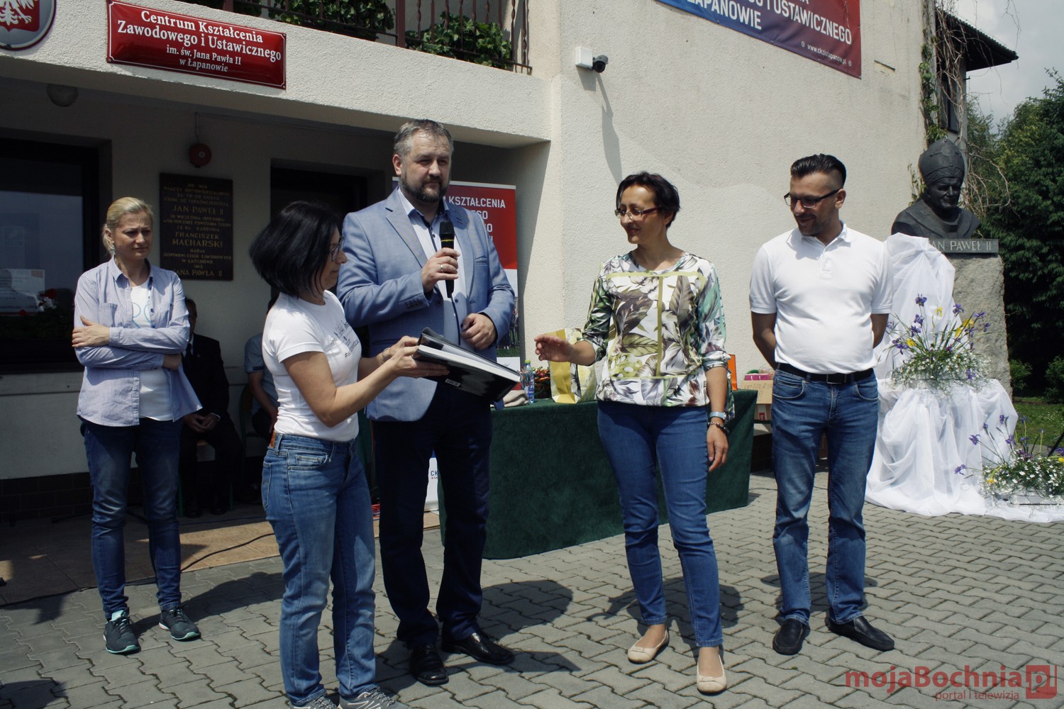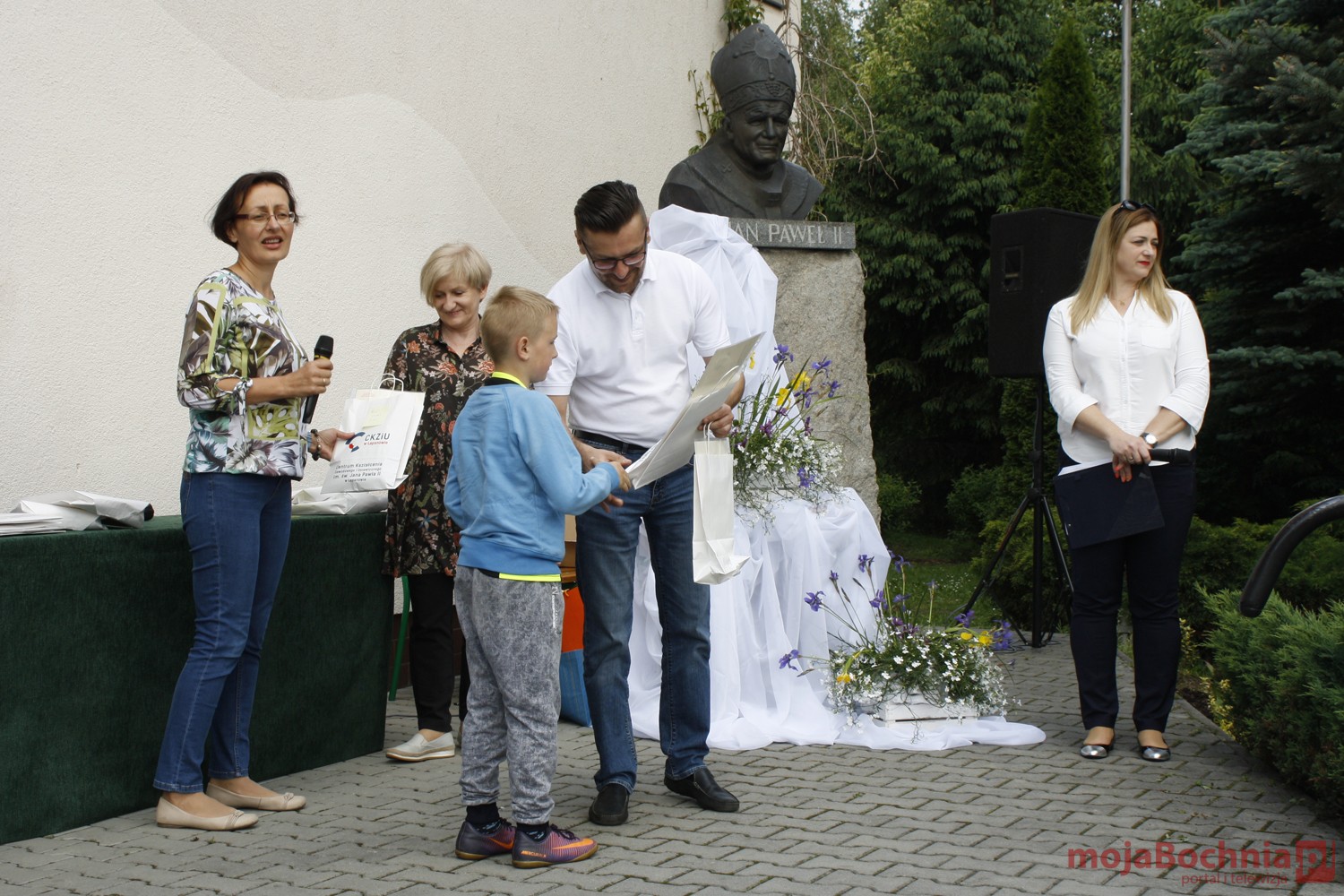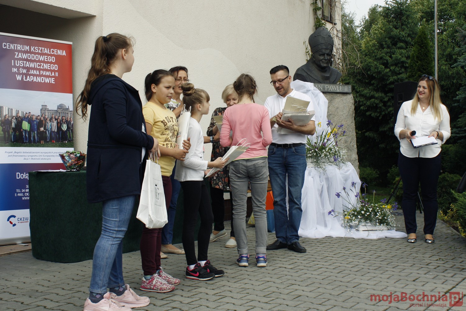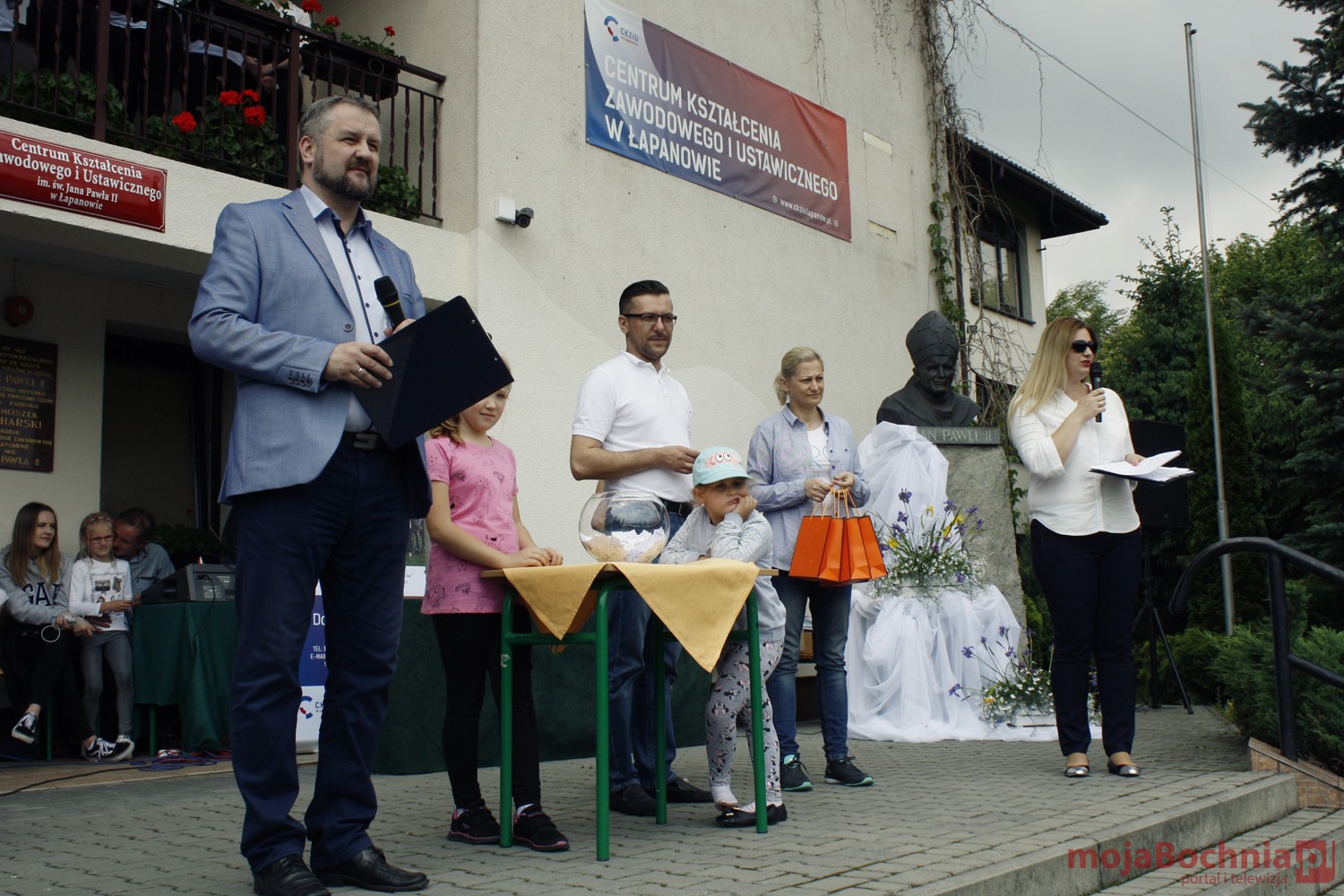 szkolny plac CKZiU w Łapanowie i posileniu się smacznym posiłkiem wędrowcy mogli oklaskiwać występ uczestników WTZ „Otwarte Serca”, a potem z niecierpliwością czekali na losowanie 5 cennych rowerów ufundowanych przez starostów: bocheńskiego i wielickiego, wójtów gminy Łapanów i Gdów oraz ks. Tadeusza Jarzębaka.