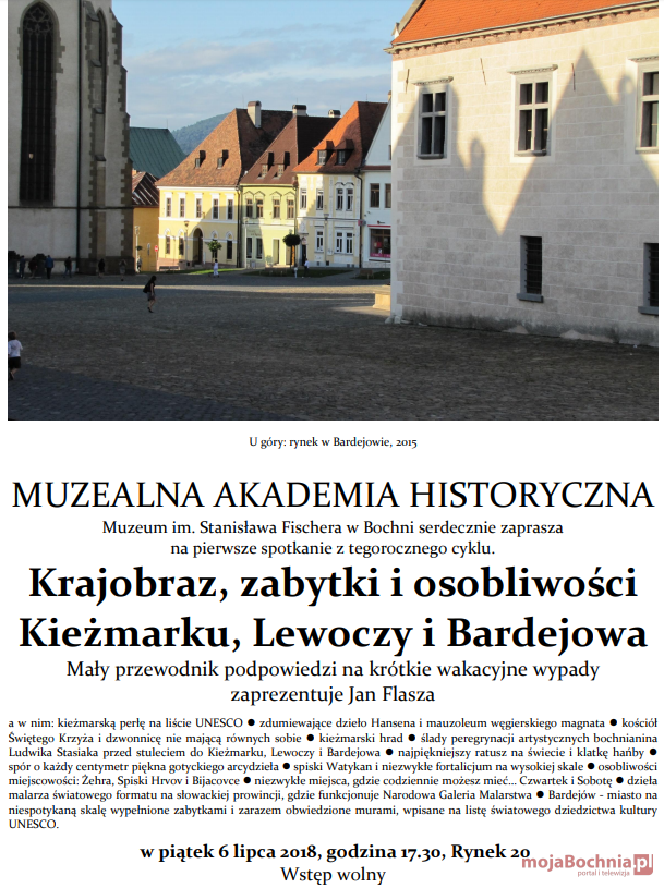Muzeum im. Stanisława Fischera w Bochni serdecznie zaprasza na pierwsze spotkanie z tegorocznego cyklu Muzealna Akademia Przyszłości. Mały przewodnik podpowiedzi na krótkie wakacyjne wypady zaprezentuje Jan Flasza.