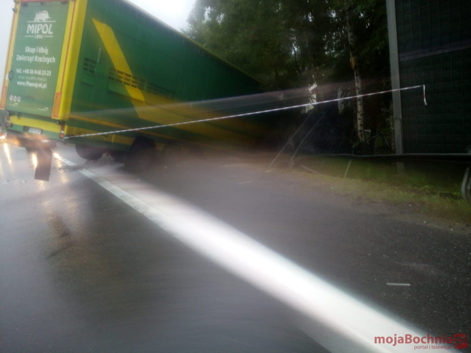 Około godziny 14.00 udało się wyciągnąć naczepę pojazdu ciężarowego i uwolnić przewożone bydło. Nadal trwają prace mające na celu wyciągnięcie ciągnika siodłowego DAF, który znajduje się poza jezdnią.”