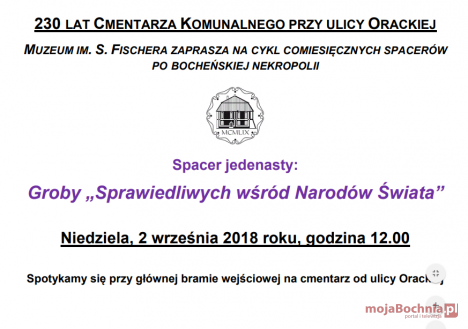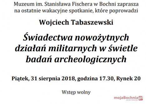 Muzeum im. S. Fischera zaprasza na cykl comiesięcznych spacerów po bocheńskiej nekropolii oraz na ostatnie wakacyjne spotkanie, które poprowadzi Wojciech Tabaszewski „Świadectwa nowożytnych działań militarnych w świetle badań archeologicznych”. Szczegóły poniżej.