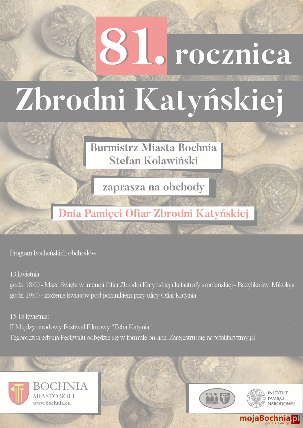 Burmistrz Miasta Bochnia zaprasza do wzięcia udziału w obchodach 81. rocznicy Zbrodni Katyńskiej.