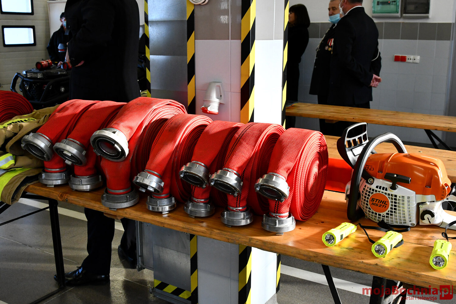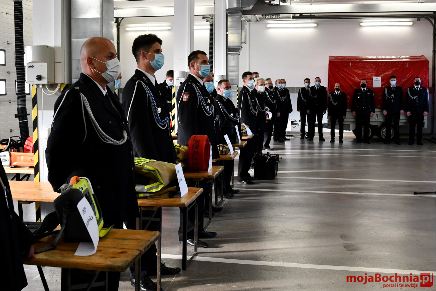 Uroczystość odbyła się w Komendzie Powiatowej PSP w Bochni i wzięli w niej udział również Komendant Powiatowy PSP Robert Cieśla wraz ze swoim zastępcą Piotrem Gadowskim, członkowie Zarządu Powiatu w Bochni Marek Rudnik i Jerzy Błoniarz, Prezes Zarządu Oddziału Powiatowego ZOSP RP Ludwik Węgrzyn oraz prezesi, naczelnicy i druhowie z jednostek odbierających sprzęt.
