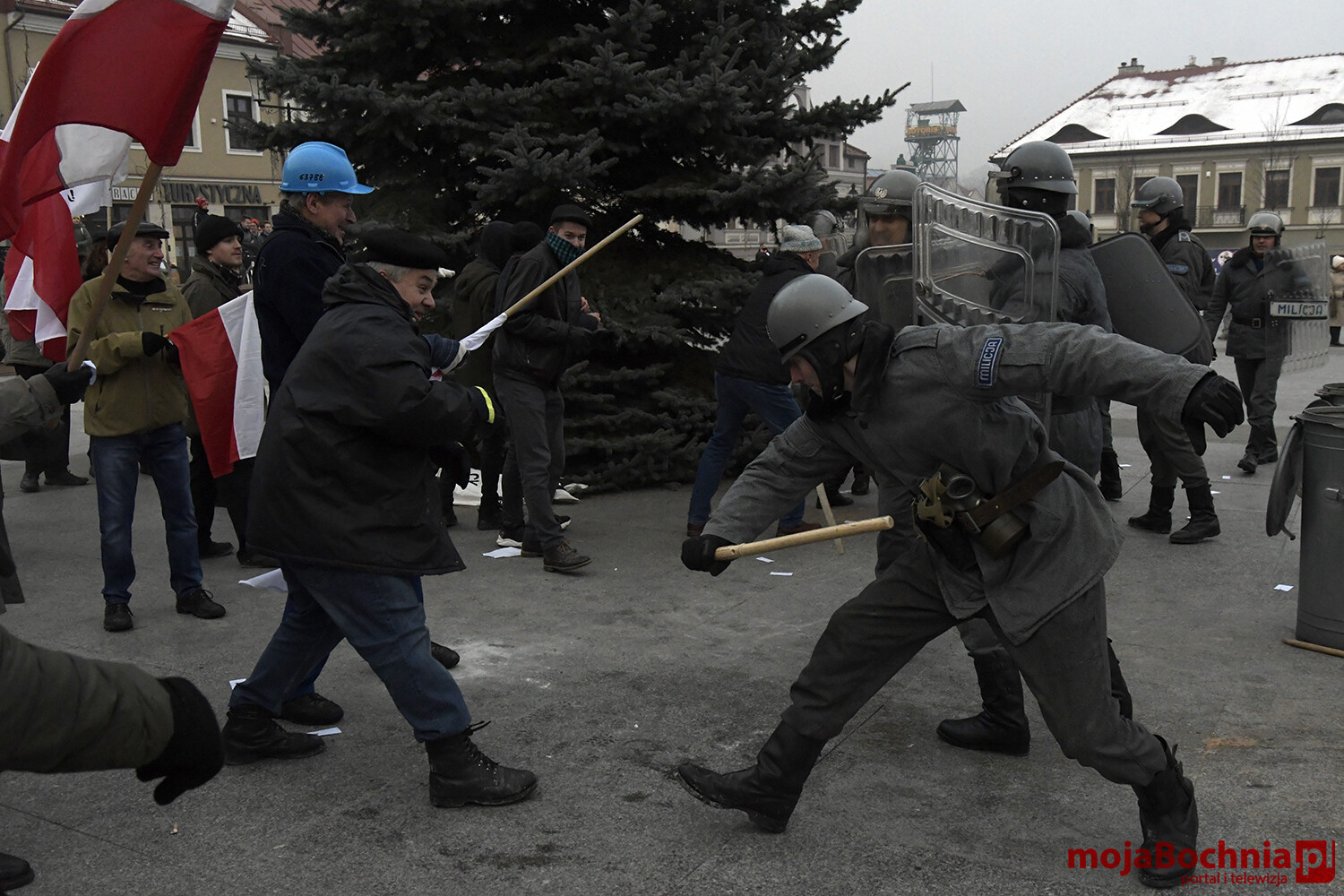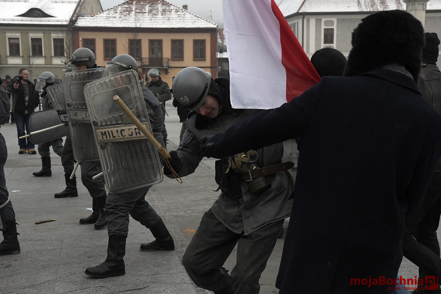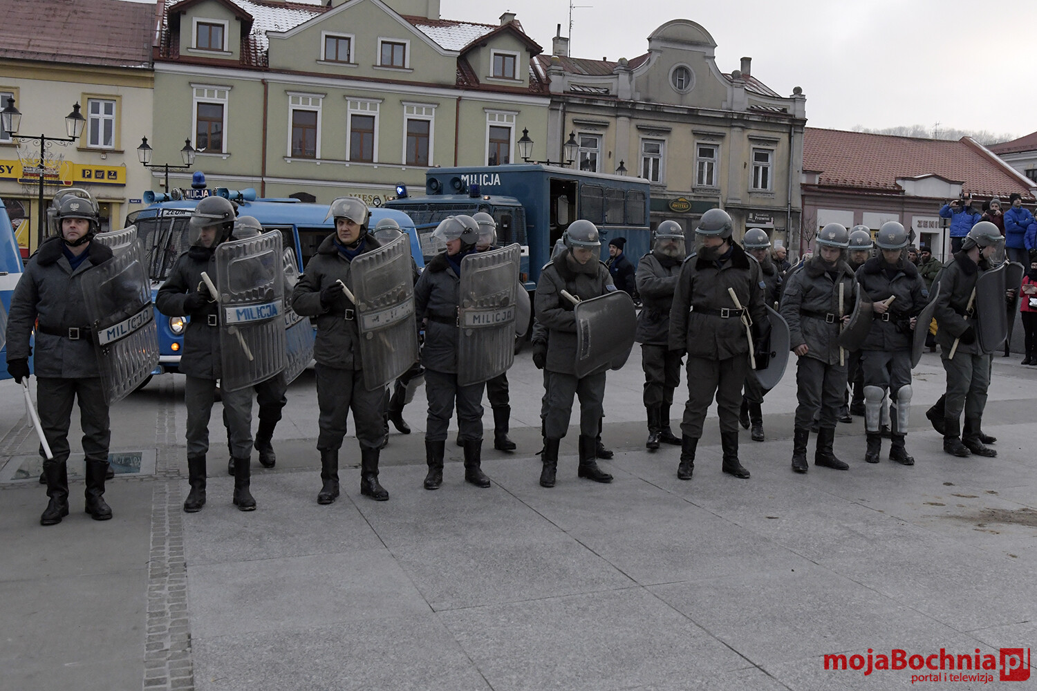 W chłodne sobotnie popołudnie odbyła się na bocheńskim Rynku rekonstrukcja wydarzeń sprzed 40 lat. Znowu powiewały flagi Solidarności, Konfederacji Polski Niepodległej oraz Niezależnego Zrzeszenia Studentów. Były odczyty, protesty. Pojawiły się bardzo dobrze odwzorowane zastępy Milicji Obywatelskiej. Barykada, petardy, kamienie, starcia demonstrantów z milicją, ścieżka zdrowia.