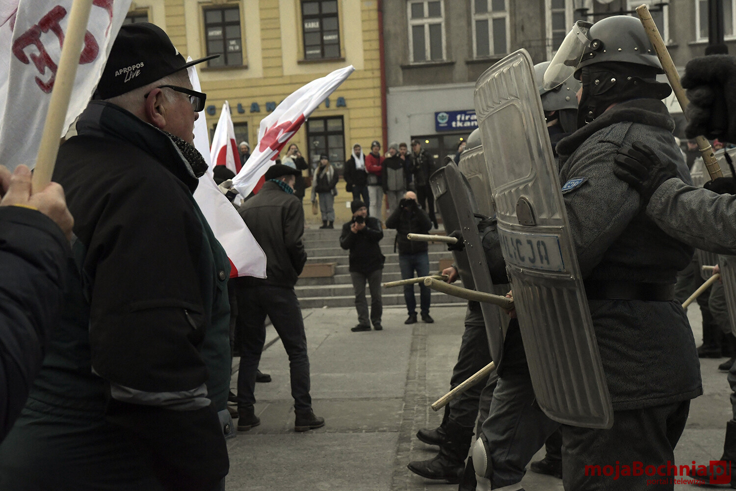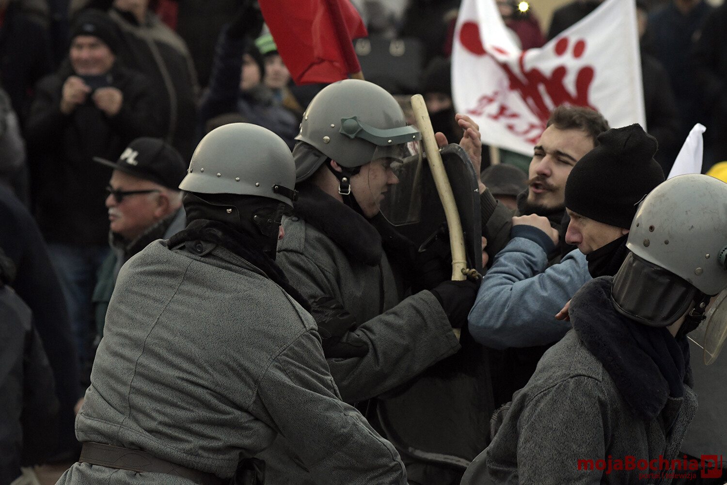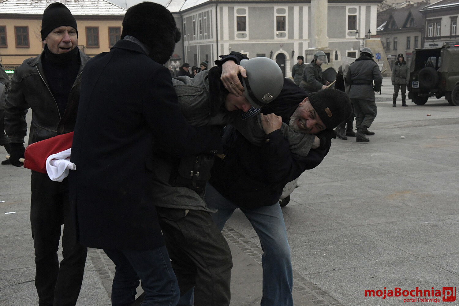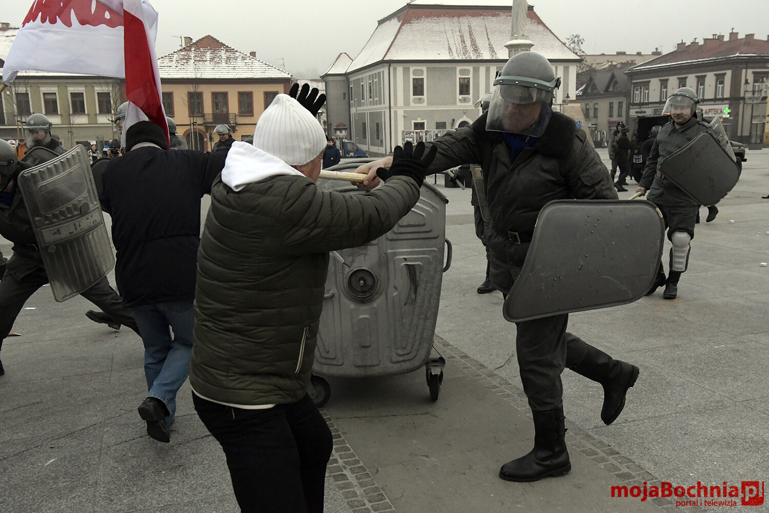 W chłodne sobotnie popołudnie odbyła się na bocheńskim Rynku rekonstrukcja wydarzeń sprzed 40 lat. Znowu powiewały flagi Solidarności, Konfederacji Polski Niepodległej oraz Niezależnego Zrzeszenia Studentów. Były odczyty, protesty. Pojawiły się bardzo dobrze odwzorowane zastępy Milicji Obywatelskiej. Barykada, petardy, kamienie, starcia demonstrantów z milicją, ścieżka zdrowia.