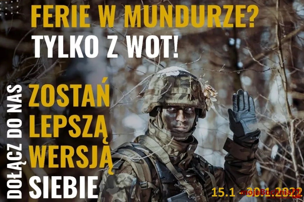 Szkolenie wojskowe organizowane podczas zimowej przerwy od nauki to propozycja 11 Małopolskiej Brygady Obrony Terytorialnej w ramach projektu „Ferie z WOT”. Od 15 do 30 stycznia 2022 r. trwa okres międzysemestralnej przerwy w nauce w Małopolsce. Wychodząc naprzeciw oczekiwaniom młodych ludzi, którzy ukończyli osiemnasty rok życia, uczniów szkół ponadpodstawowych, studentów, nauczycieli 11 MBOT organizuje specjalną edycję 16-dniowego szkolenia podstawowego i 8-dniowego wyrównawczego. Propozycja kierowana jest także do rodziców, których dzieci w tym czasie spędzają czas wolny poza domem np. na zorganizowanych obozach zimowych.