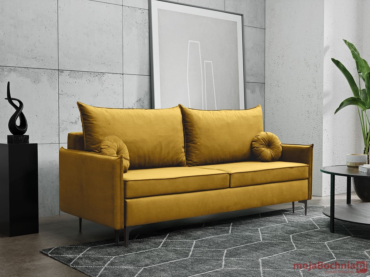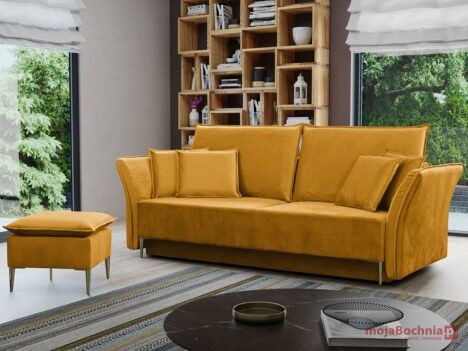 – musztardowy – to nieco chłodny, a zdecydowanie bardziej stonowany od złotego odcień gorczycy. W praktyce kapitalna propozycja dla tych, którzy szukają wyróżniającego się na planie pokoju akcentu. Kanapa do salonu w musztardowej żółci świetnie sprawdzi się w tej roli. Zamiast zdominować aranżację, tylko ją ożywi.