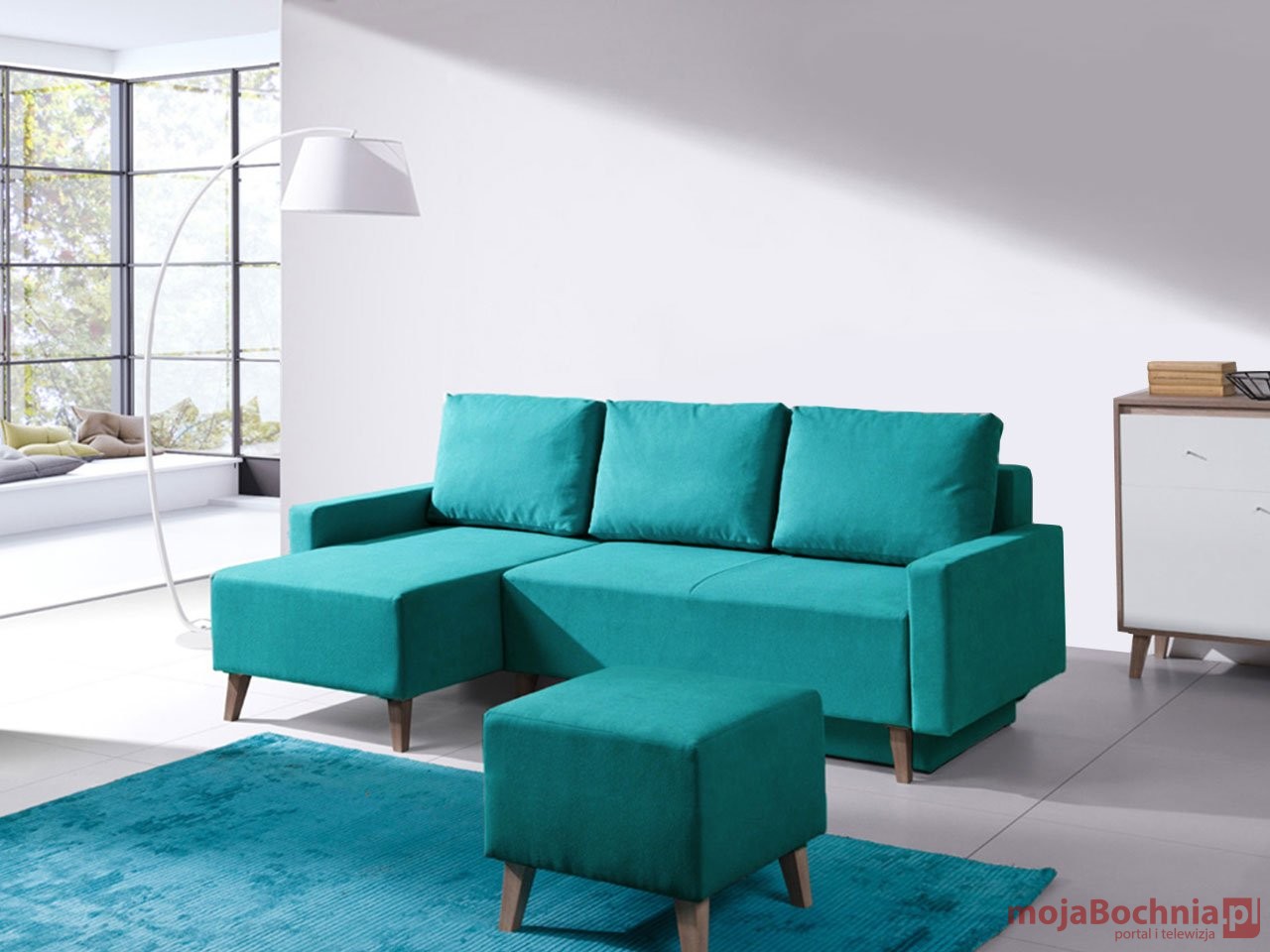 Turkusowa kanapa do salonu