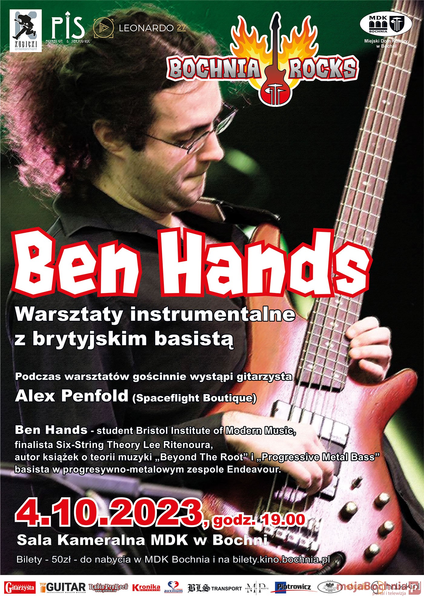 Ben Hands (Endeavour), brytyjski basista, autor dwóch książek o teorii muzyki „Beyond The Root” i „Progressive Metal Bass” poprowadzi w Bochni warsztaty w ramach cyklu Bochnia Rocks. 4 października (środa) 2023 r. o godz. 19 w sali kameralnej MDK zdradzi tajniki improwizacji, a gościnnie wystąpi z nim na gitarze Alex Penfold (Spaceflight Boutique)