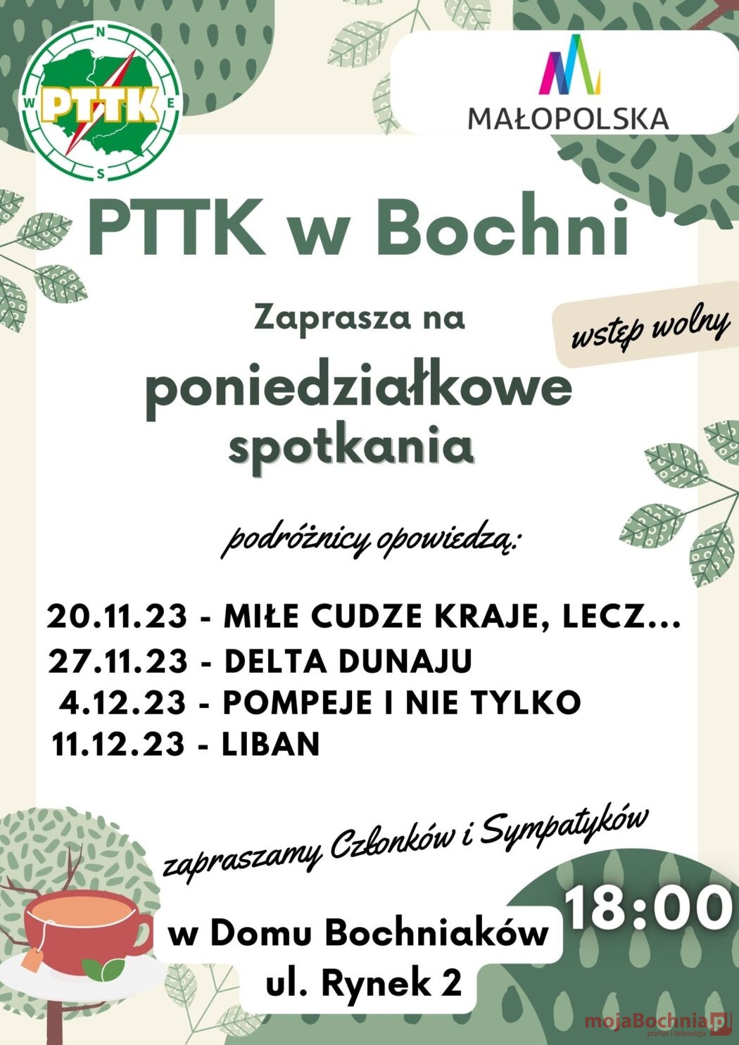 Jak to zwykle z Nami – każdy znajdzie coś dla siebie odpowiedniego a dodatkowo w poniedziałki zapraszamy do Domu Bochniaków na spotkania z podróżnikami: