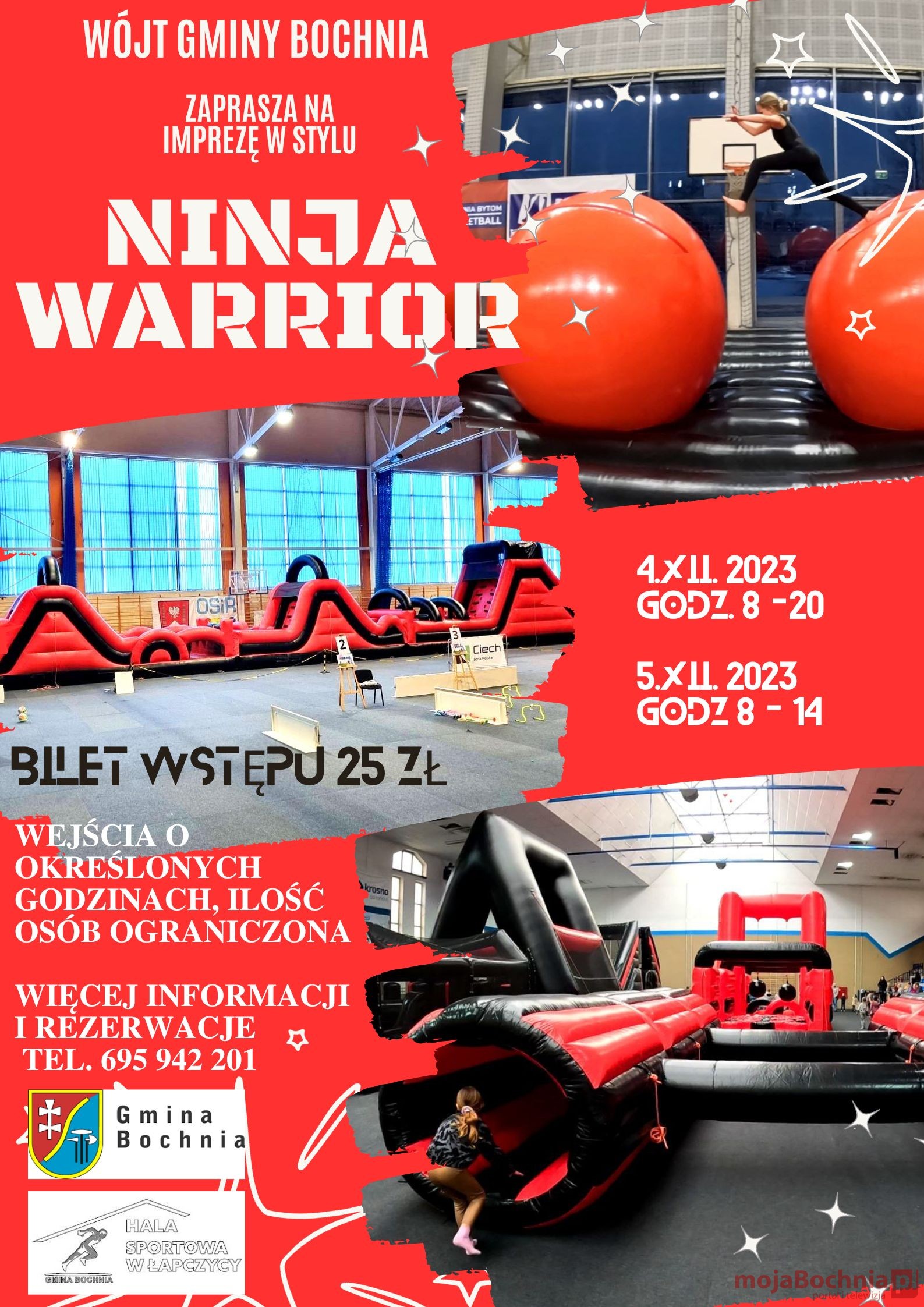 W poniedziałek i wtorek 4 i 5 grudnia odbędzie się w Łapczycy, w Hali Widowiskowo-Sportowej w Łapczycy impreza w stylu Ninja Warrior.