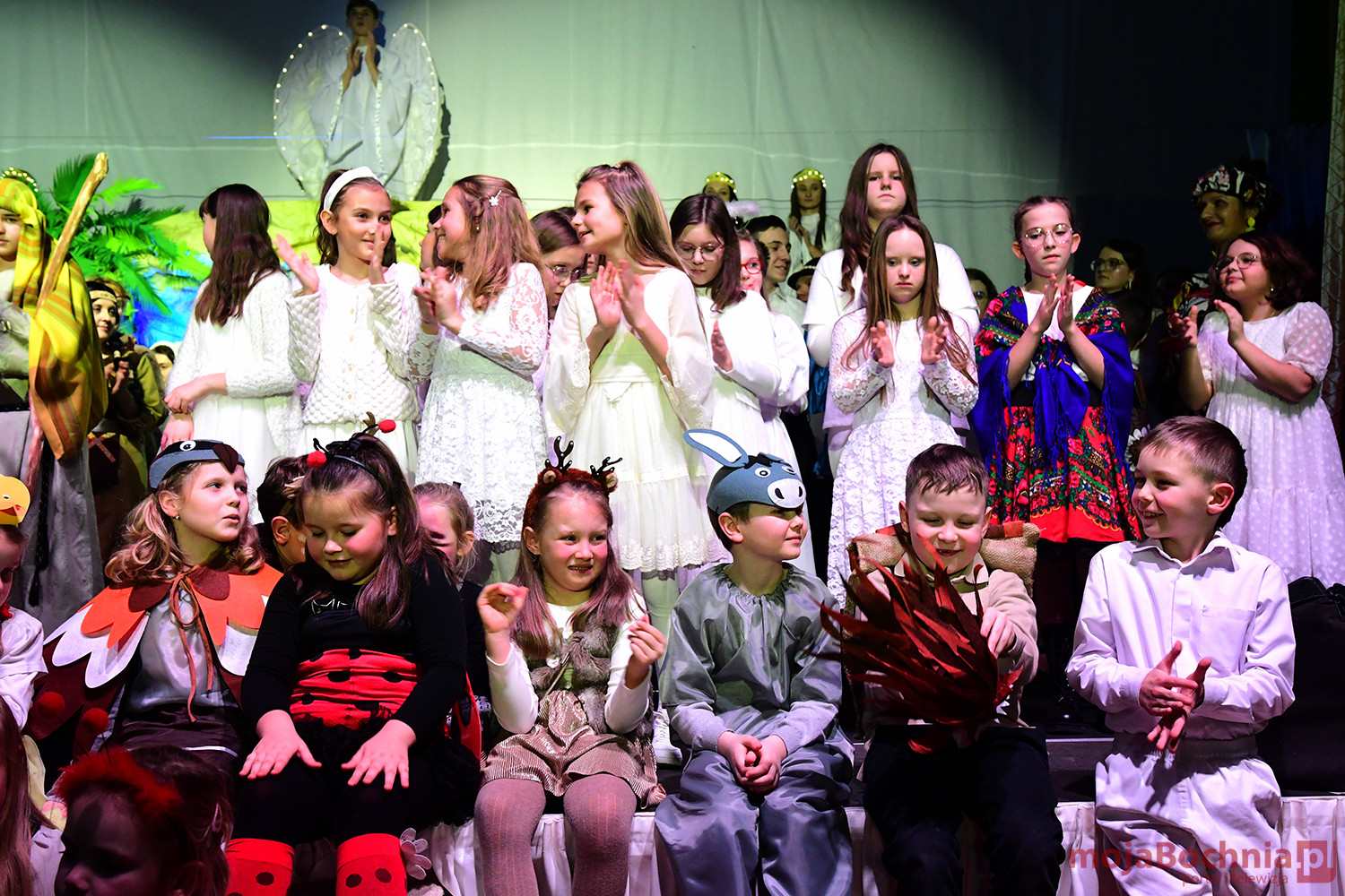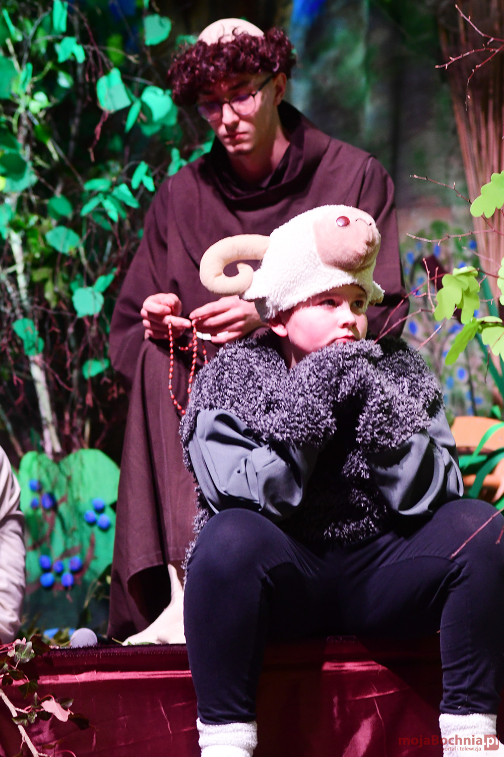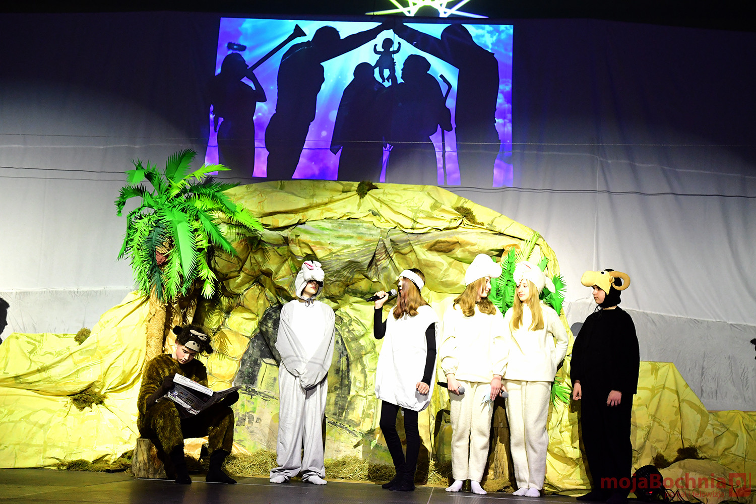 Wydarzenia ze sceny często przeplatane były piosenkami wykonywanymi przez dziecięcy chór, niekiedy ograniczony do śpiewu solistów czy także wprowadzeniami do następujących wydarzeń przez dyrektor szkoły – Agnieszkę Wąsik (w początkowej części przedstawienia) oraz odgrywanej postaci świętego Franciszka z Asyżu. Tematyka jasełek – tak znana z licznych ich wersji – została w bieżącym roku wzbogacona o chwytające za serce, wyśpiewane, przesłanie dzieci proszące o pokój na świecie.