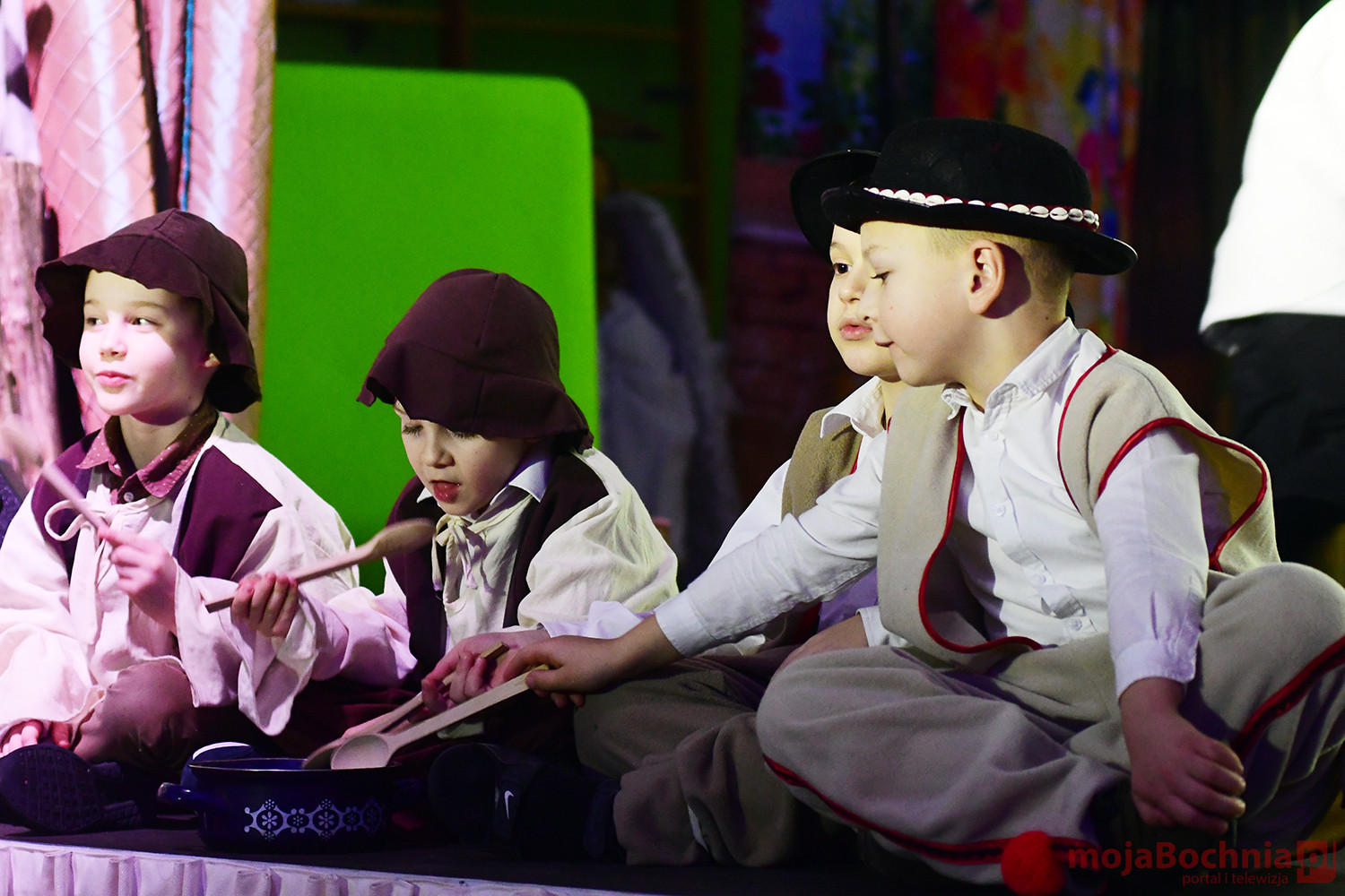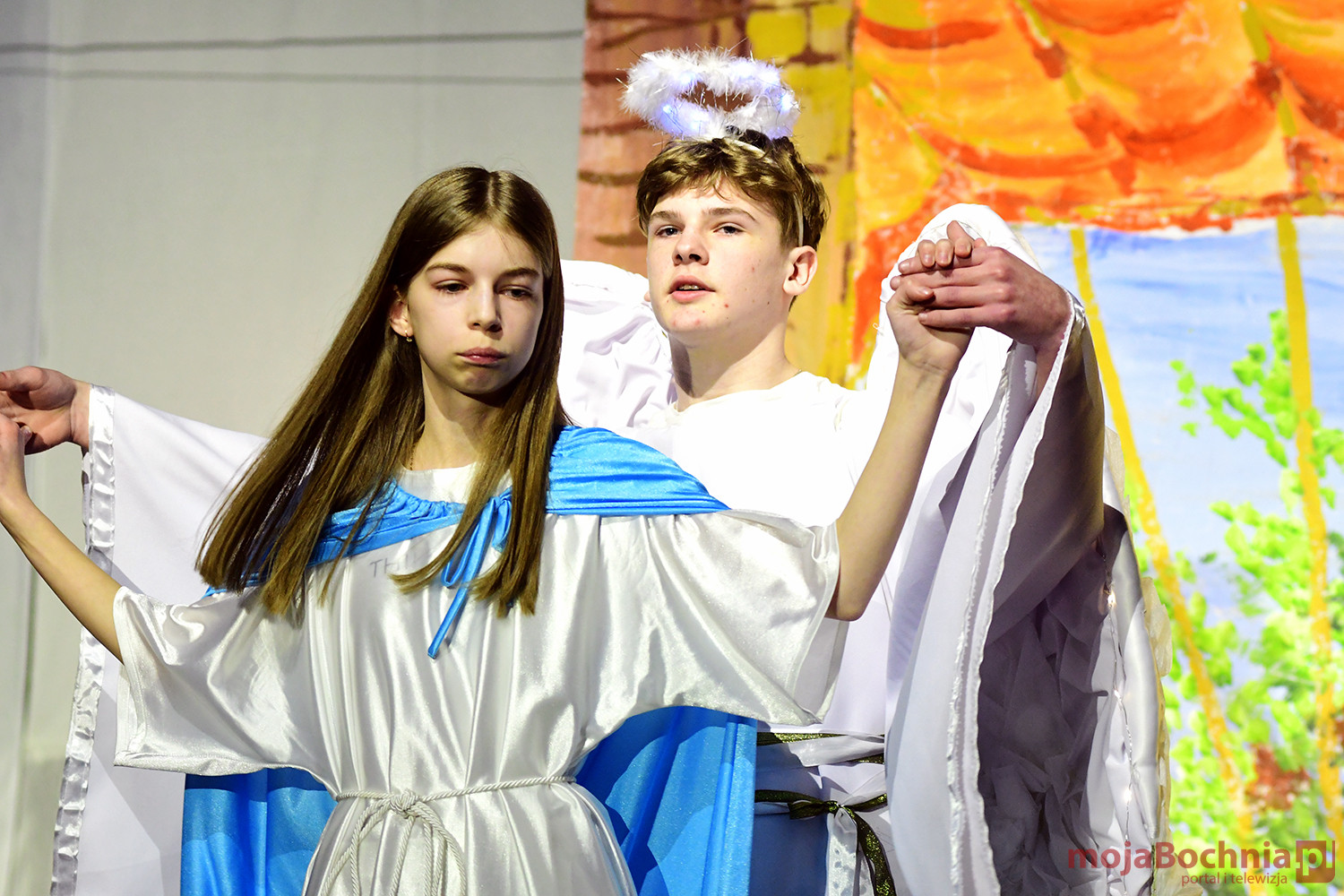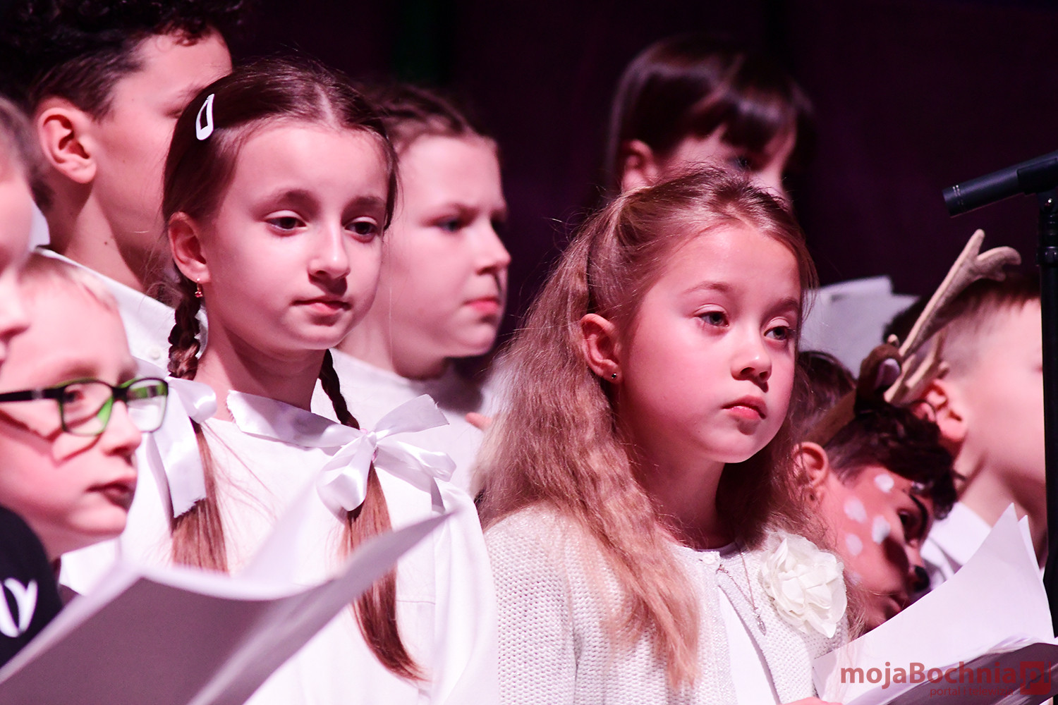 Wydarzenia ze sceny często przeplatane były piosenkami wykonywanymi przez dziecięcy chór, niekiedy ograniczony do śpiewu solistów czy także wprowadzeniami do następujących wydarzeń przez dyrektor szkoły – Agnieszkę Wąsik (w początkowej części przedstawienia) oraz odgrywanej postaci świętego Franciszka z Asyżu. Tematyka jasełek – tak znana z licznych ich wersji – została w bieżącym roku wzbogacona o chwytające za serce, wyśpiewane, przesłanie dzieci proszące o pokój na świecie.