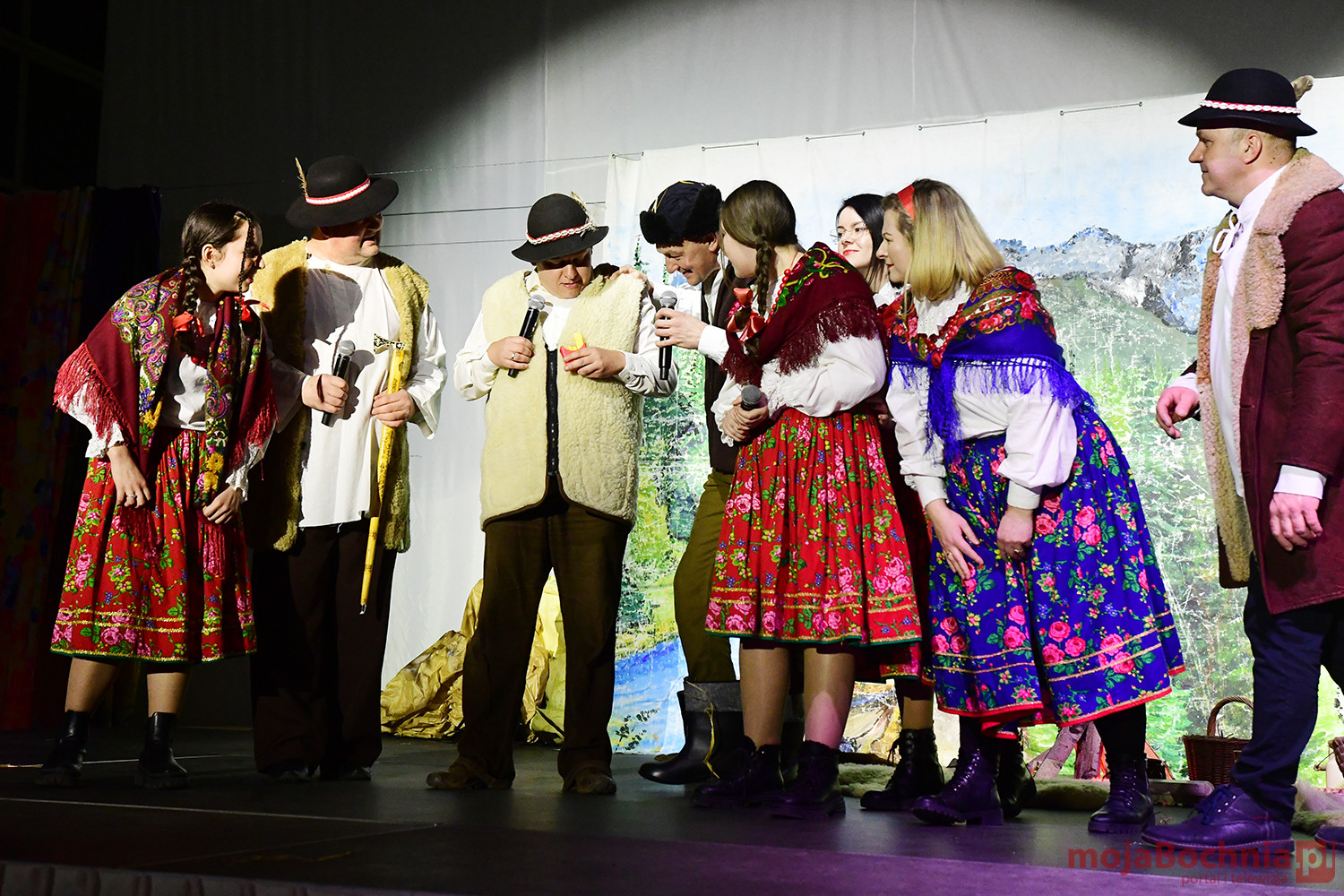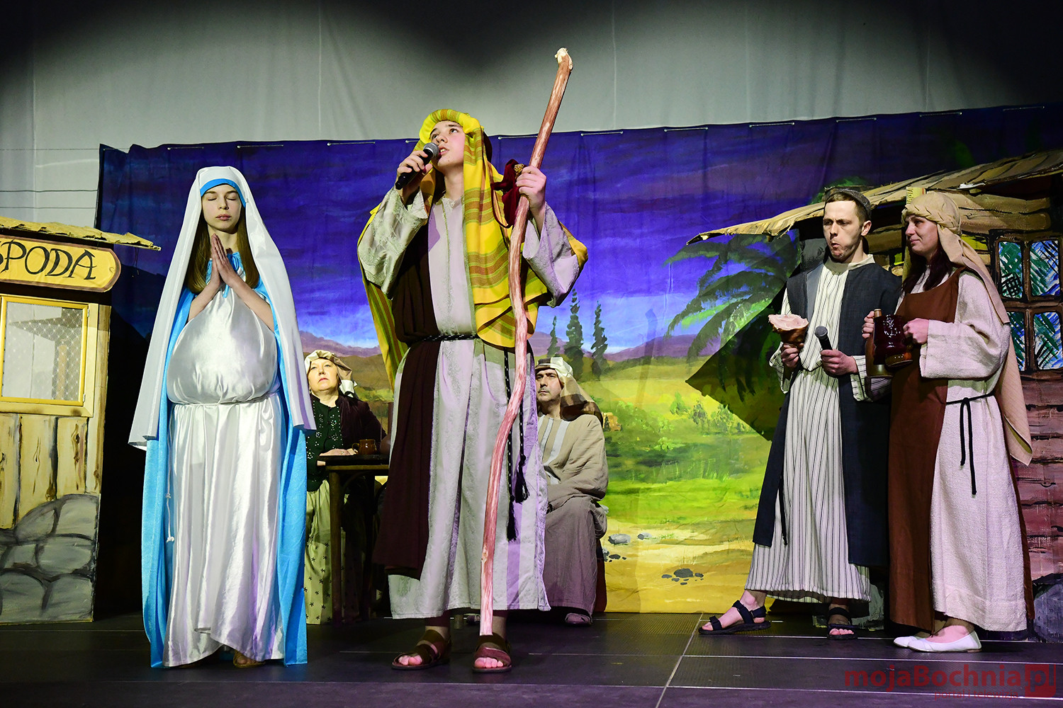 W jasełka zaangażowana jest cała miejscowość. Od budowy scenografii, przez przygotowanie urozmaiconych strojów, rekwizytów, muzykę po grę aktorską. Na dużej scenie zlokalizowanej w hali sportowej widzieliśmy uczniów wszystkich klas tamtejszej szkoły podstawowej, którzy tworzyli chór, odgrywali mniej lub bardziej złożone role. Wtórowali im rodzice, których zapamiętamy jako rezolutnych pastuszków prowadzących komiczne, odwołujące się do aktualnych wydarzeń i zjawisk, dialogi. Nauczyciele i sołtys Kobyla odgrywający role aniołów. Z kolei pracownicy samorządu z burmistrz Nowego Wiśnicza -Małgorzatą Więckowską, byli bohaterami kilkuminutowego filmu nagranego w scenerii wiśnickiego zamku, przedstawiającego biblijnego Heroda, jego żonę, świtę, anioła, diabła i mędrców ze wschodu. Film wyświetlony został w centralnej części sceny i bezpośrednio korespondował z dynamiką całości jasełek. Nie sposób pominąć tak ważnego przy ambitnym i rozbudowanym projekcie – profesjonalnego oświetlenia i nagłośnienia, które miało nie tylko poprawiać walory akustyczne i wizualne całości, ale również podkreślać znaczenie poszczególnych scen, jak chociażby gra cieni przedstawiająca narodziny Chrystusa.