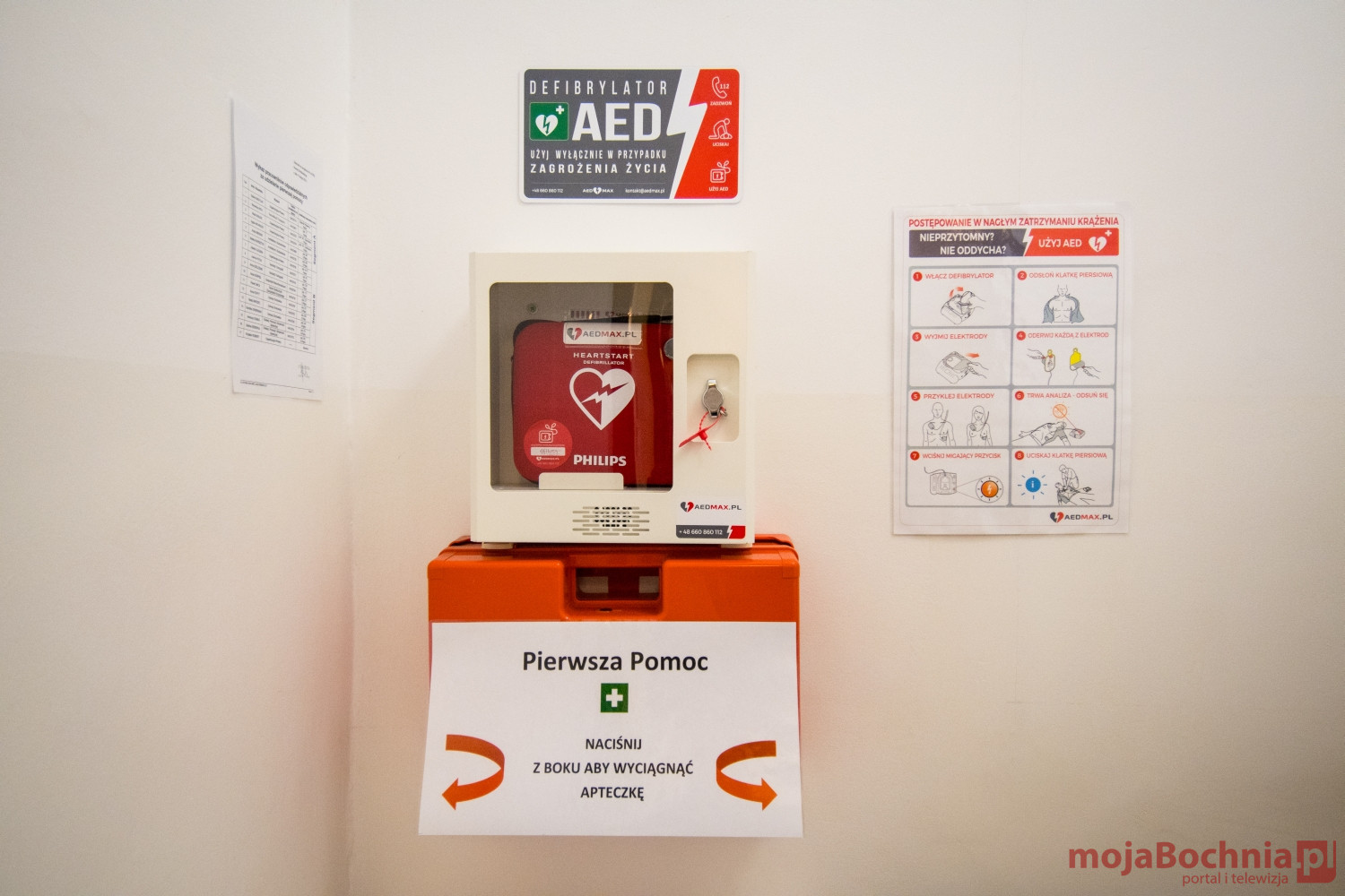 Powiat Bocheński dba o zdrowie i życie mieszkańców nie tylko przez duże i medialne inwestycje jak np. utworzenie Centrum Diagnostyki Obrazowej z Pracownią Rezonansu Magnetycznego w bocheńskim szpitalu, ale też poprzez małe, ale równie ważne projekty. AED w budynku starostwa to niepozorne urządzenie, które może uratować czyjeś życie. Dlatego pamiętajmy o tym, że mobilny defibrylator jest cały czas gotowy do użycia i znajduje się tuż przy Dzienniku Podawczym – mówi Adam Korta Starosta Bocheński