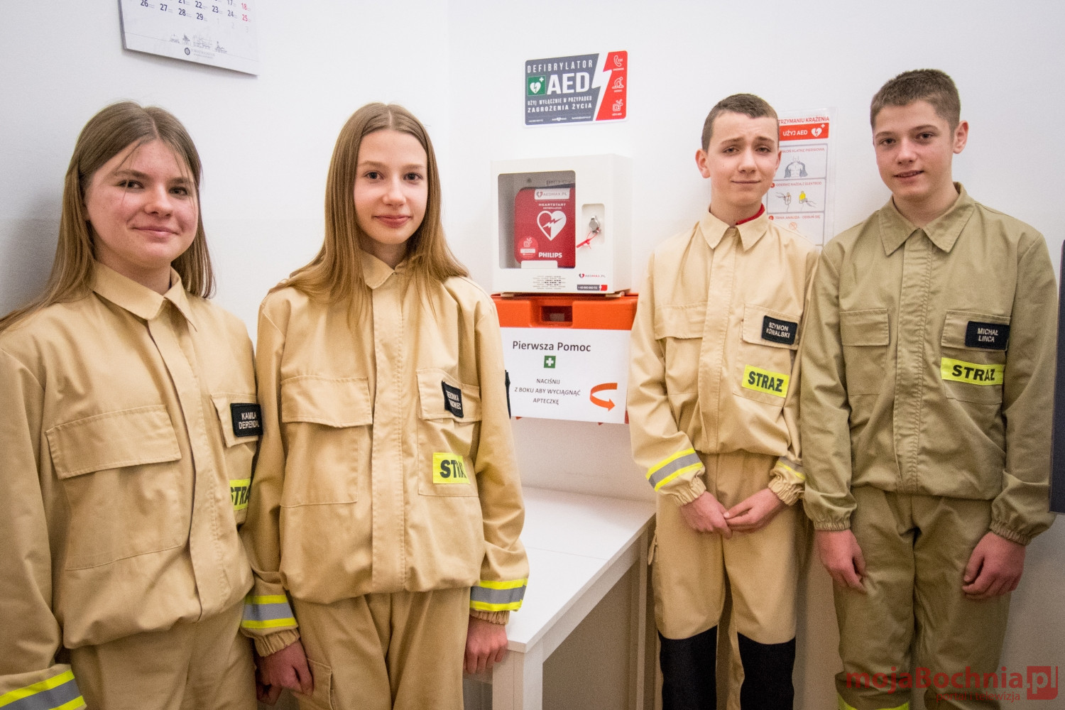 Młodzieżowa Drużyna Pożarnicza OSP w Borku w ramach projektu #FeriezAED rozpoczęła propagowanie wiedzy na temat defibrylatorów AED. Pierwszym miejscem ich wizyty było Starostwo Powiatowe w Bochni gdzie od 2022 roku obok Dziennika Podawczego znajduje się defibrylator AED.