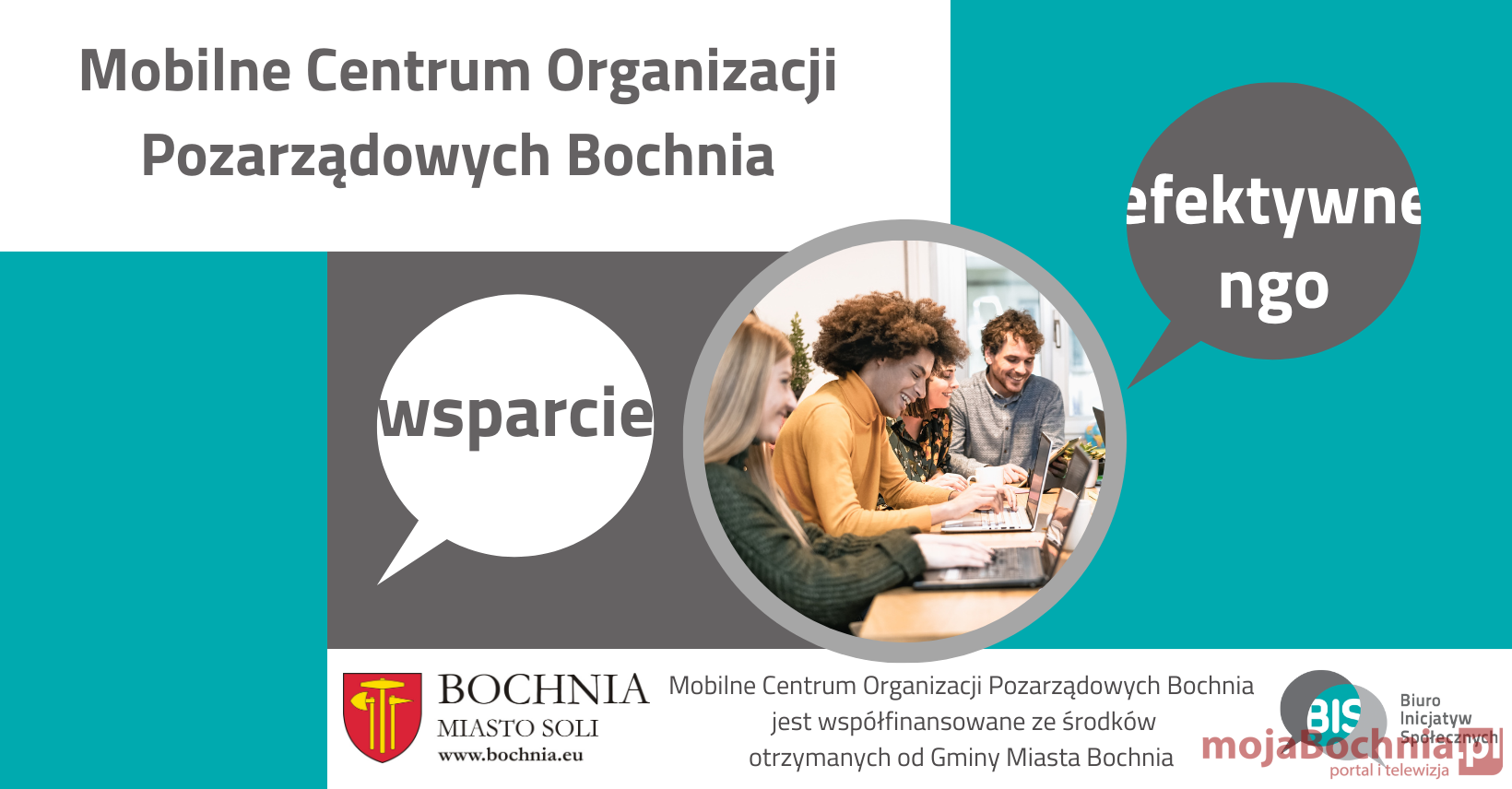 Mobilne Centrum Organizacji Pozarządowych Bochnia (MCOP) oferować będzie różnego rodzaju wsparcie skierowane do działających na terenie Miasta Bochnia organizacji pozarządowych oraz grup nieformalnych chcących założyć NGO. Operatorem Centrum w roku 2024 jest Fundacja Biuro Inicjatyw Społecznych.