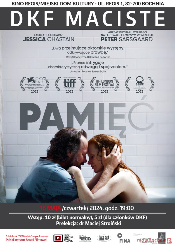DKF „Maciste” zaprasza 16 maja na film „Pamięć”. To obraz jednego z najciekawszych współczesnych twórców filmowych – Michela Franco. Początek o godz. 19.00. Prelekcję przed filmem wygłosi: dr Maciej Stroiński.