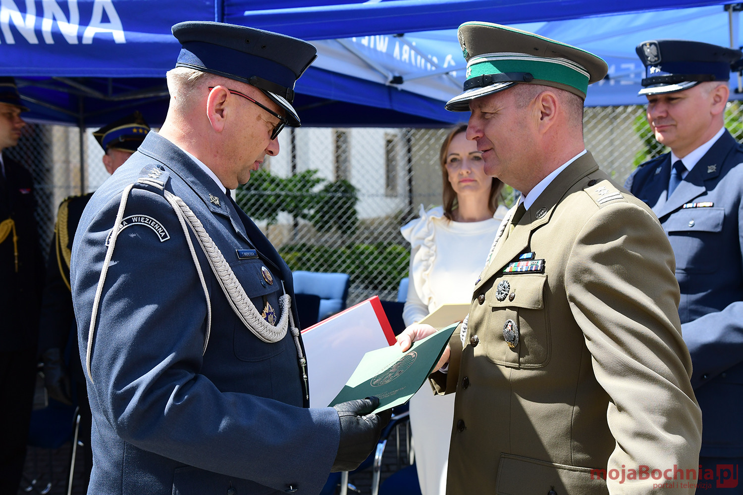 Uroczysta zbiórka związana była z niedawnymi obchodami święta Służby Więziennej, które przypada na 29 czerwca. W Nowym Wiśniczu w obecności przedstawicieli innych służb (wojska, straży pożarnej, policji i straży miejskiej), przedstawicieli samorządów (burmistrz Nowego Wiśnicza i Bochni) Dyrektor Okręgowy Służby Więziennej w Krakowie, płk Tomasz Wiercioch wręczył funkcjonariuszom jednostek okręgu krakowskiego akty nadania wyższych stopni w korpusach: oficerskim, chorążych oraz podoficerskim, a także odznaczenia Służby Więziennej.