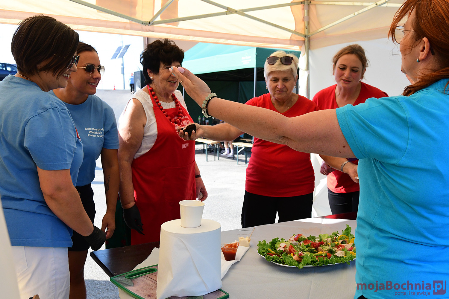 W szranki stanęło sześć drużyn, reprezentujące KGW z miejscowości: Wiśnicz, Mały, Muchówka, Łomna, Kobyle, Kopaliny i Połom Duży. Zespoły, w składzie których występowali również panowie, rywalizowały w nietypowych konkurencjach, miedzy innymi: przygotowania ciasta drożdżowego, talerza pełnego kanapek, sztafety celem ubicia białka, obierania ziemniaków. Liczył się nie tylko smak, ale i gustowne przygotowanie, czas i dokładność (w przypadku obierania ziemniaków czy też ubijania białka). Trzyosobowe jury (Bożena Hyrc-kierownik Filialnej Szkoły Podstawowej w Połomiu Dużym, Anna Daniec – działaczka i członkini Stowarzyszenia 60+ z Nowego Wiśnicza oraz Włodzimierz Dominiak – artyście i nauczyciel Państwowego Liceum Sztuk Plastycznych w Nowym Wiśniczu) miało trudne zadanie, aby wybrać zwycięzcę. Ostatecznie najlepsza okazała się drużyna KGW z Łomnej, która otrzymała puchar dla najlepszego Koła Gospodyń Wiejskich ufundowany przez Burmistrz Małgorzatę Więckowską. Na drugim miejscu uplasowała się drużyna z Wiśnicza Małego, a na trzecim gospodarze – Połom Duży.