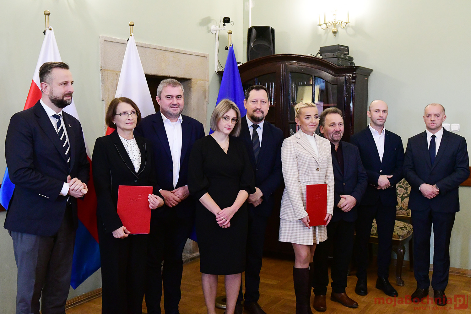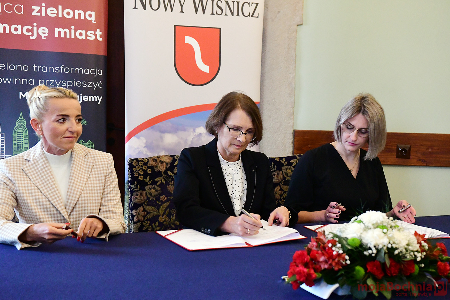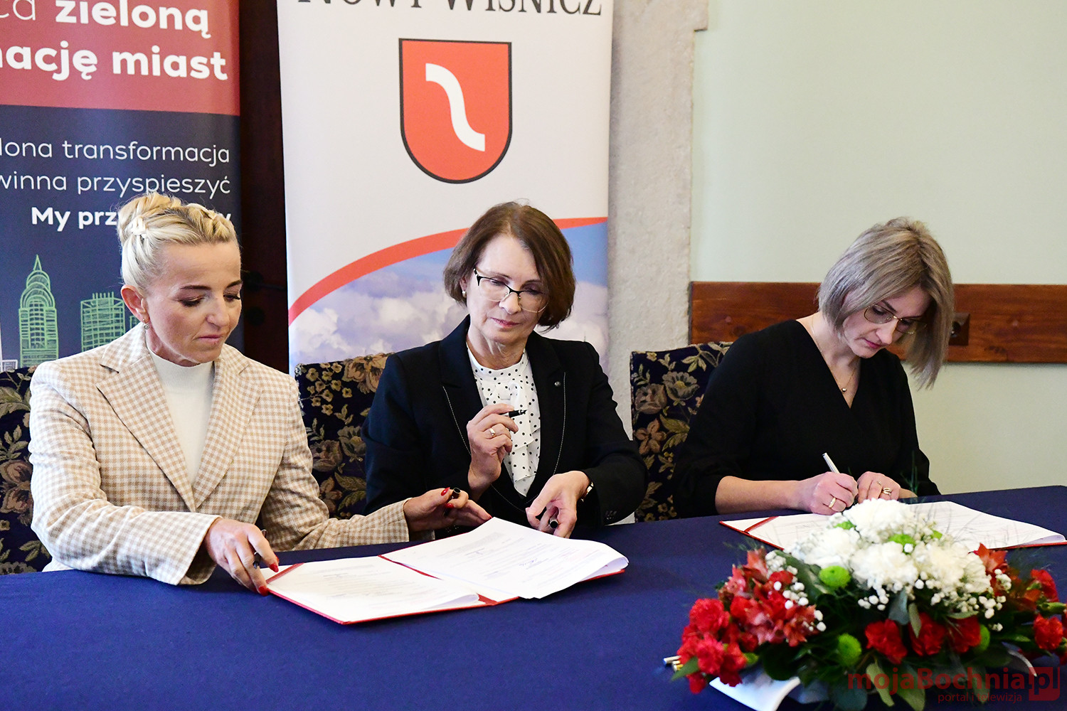 Uroczystość podpisania umowy pomiędzy Miastem Nowy Wiśnicz a Bankiem Gospodarstwa Krajowego o udzieleniu miastu nieoprocentowanej pożyczki (a z niej 5% kwoty może być umorzona), odbyła się w sali obrad Rady Miejskiej w Ratuszu w Nowym Wiśniczu. Po złożeniu podpisów przez Małgorzatę Więckowską, Martę Postuła oraz Skarbnik Nowego Wiśnicza – Ewa Korogwicz, głos zabrali w Małgorzata Więckwoska, Marta Postuła oraz Władysław Kosiniak – Kamysz.