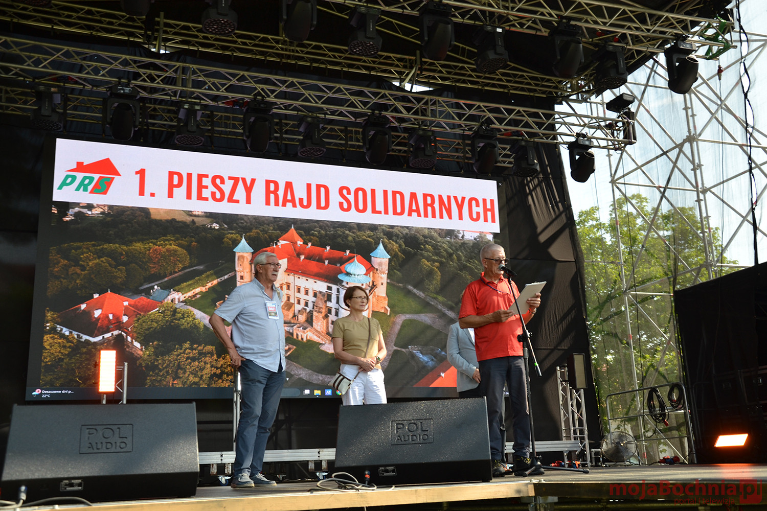 Uczestników rajdu powitała serdecznie Pani burmistrz Małgorzata Więckowska, a pozdrowienia dla turystów w imieniu wojewody Krzysztofa Jana Klęczara przekazał Tadeusz Kozioł. Edward Nowak wygłosił oczekiwaną przez uczestników informację, że „1. Pieszy Rajd Solidarnych uważam za otwarty”. Organizator i sędzia główny Łukasz Bajer wchodząc na sceną przekazał informację o włączeniu stopera i wysłał na trasy wszystkich uczestników słowami „do widzenia na mecie!”.