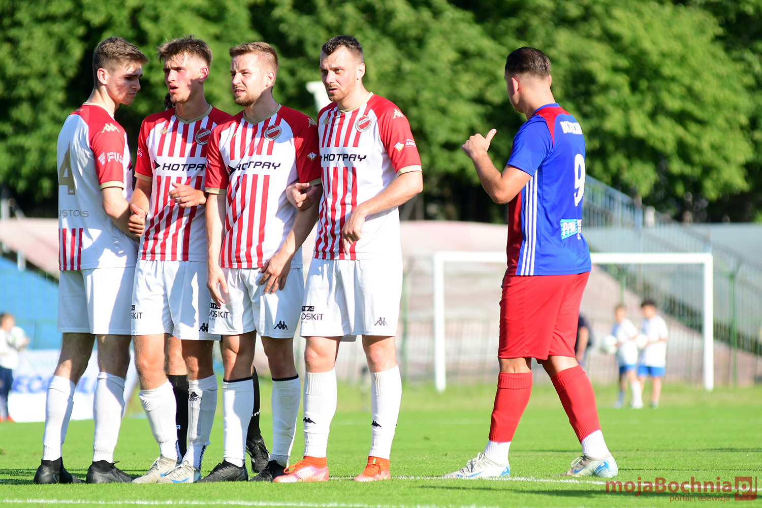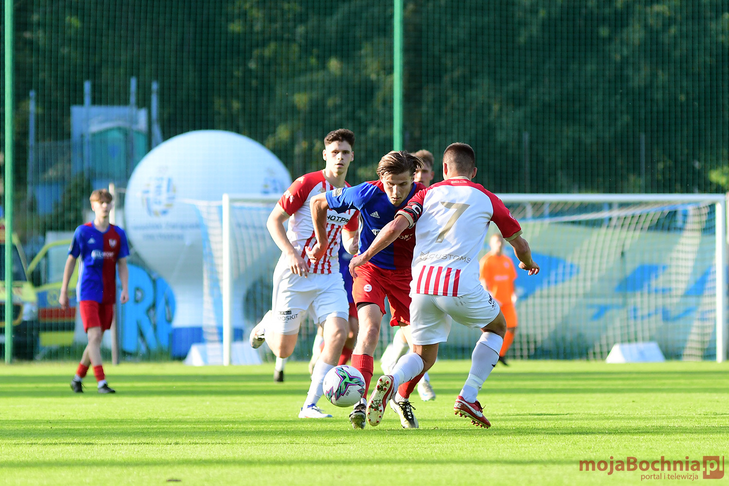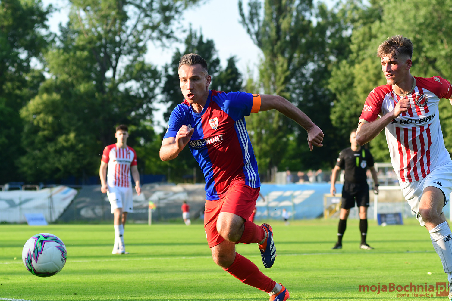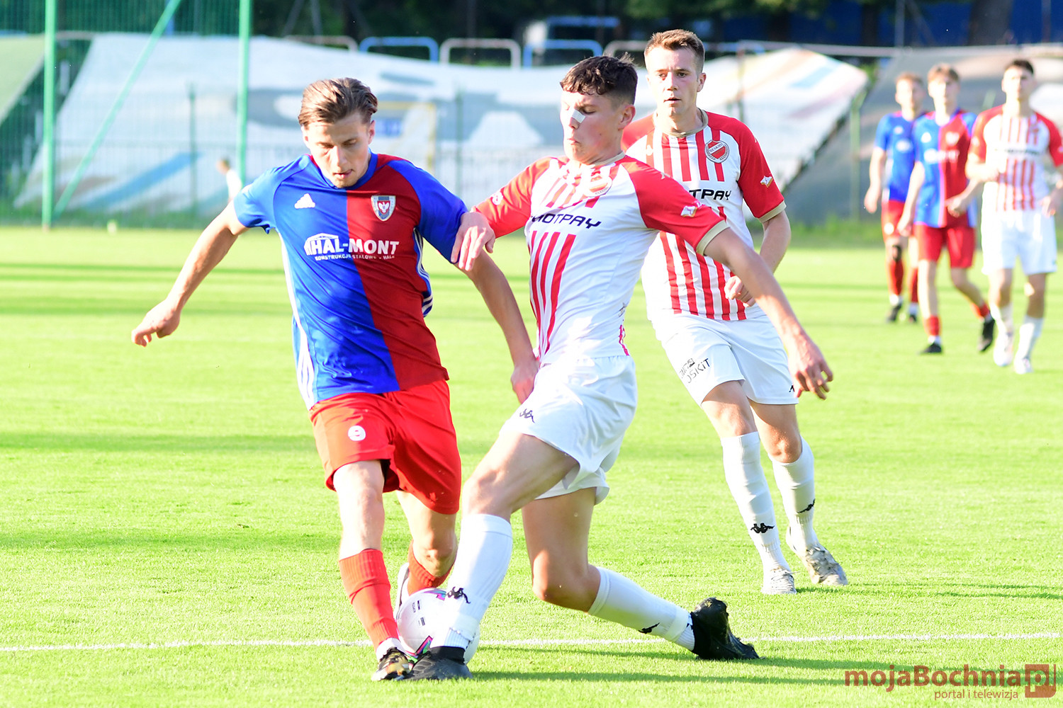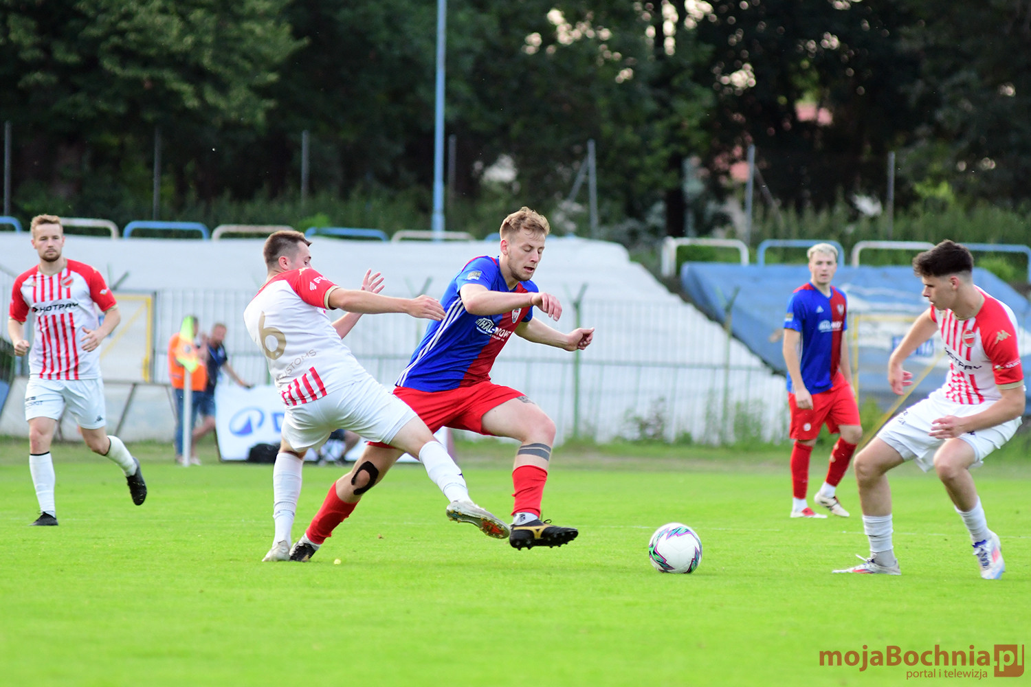 Rozgrywany na obiekcie Hutnika Kraków jeden z najważniejszych meczów w najnowszej historii BKS-u rozpoczął się idealnie dla podopiecznych trenera Damiana Rębisza, bo błyskawicznie wywalczyli rzut karny po faulu na Mateuszu Grzybowskim. Szansę wykorzystał Hubert Skocz. Niestety przeciwnicy dość szybko podnieśli się po nieudanym początku. Po ataku prawym skrzydłem piłka trafiła do Oliwiera Pilcha, a ten wykorzystał wolną przestrzeń i doprowadził do remisu strzałem przy dalszym słupku. Bochnianie mogli szybko odpowiedzieć, ale Skocz trafił z dystansu jedynie w poprzeczkę. Do końca pierwszej połowy wynik nie uległ już zmianie, bo obie drużyny zaczęły grać ostrożniej.