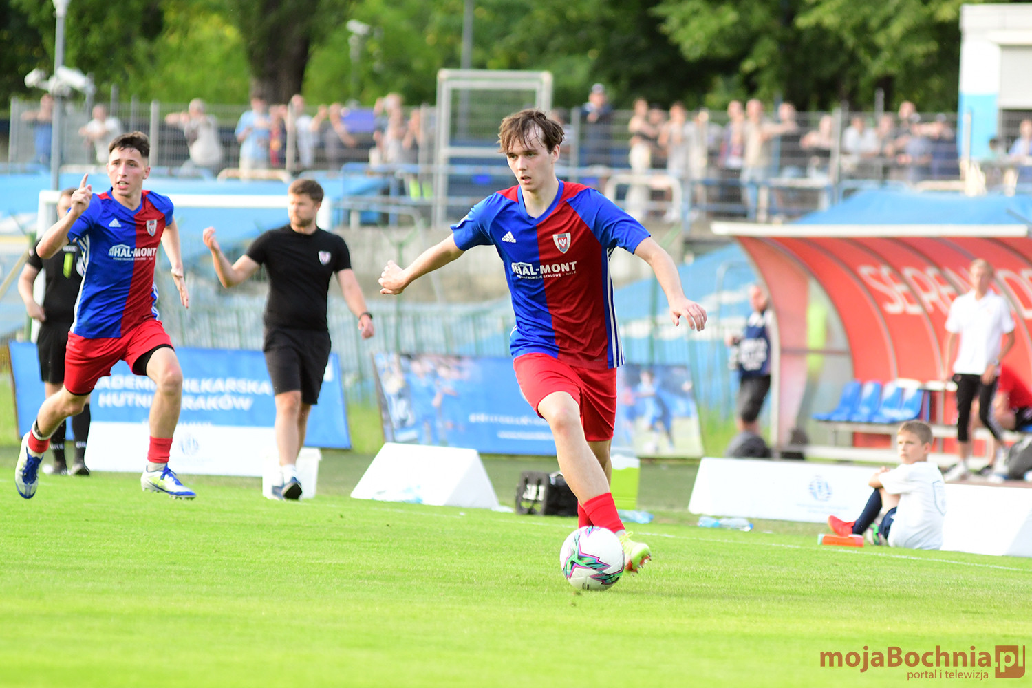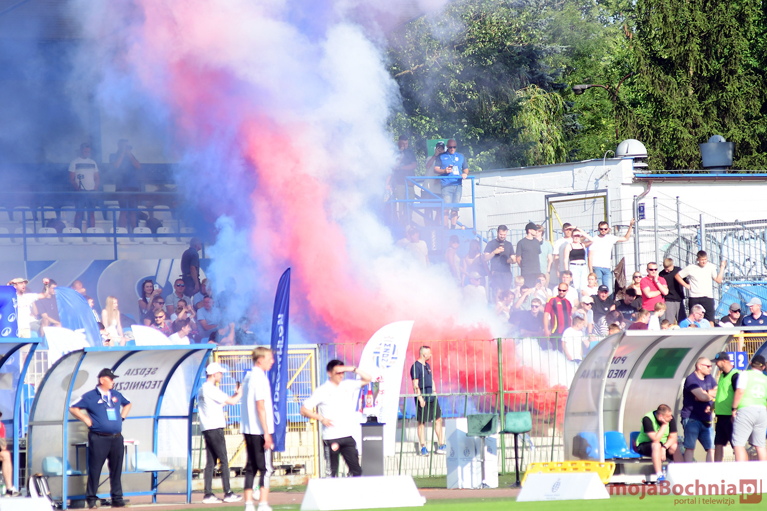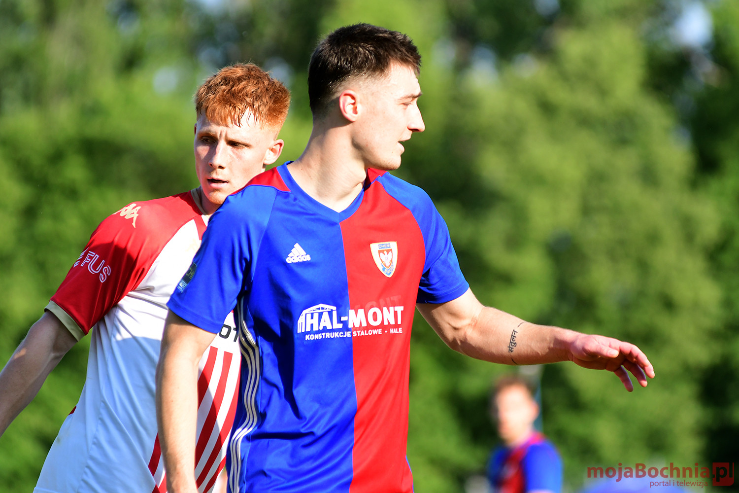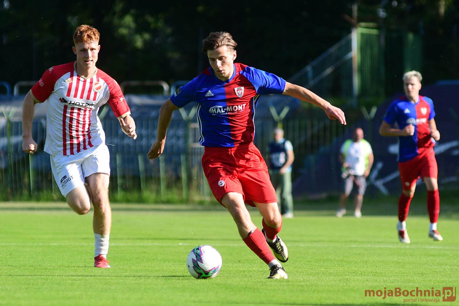 Rozgrywany na obiekcie Hutnika Kraków jeden z najważniejszych meczów w najnowszej historii BKS-u rozpoczął się idealnie dla podopiecznych trenera Damiana Rębisza, bo błyskawicznie wywalczyli rzut karny po faulu na Mateuszu Grzybowskim. Szansę wykorzystał Hubert Skocz. Niestety przeciwnicy dość szybko podnieśli się po nieudanym początku. Po ataku prawym skrzydłem piłka trafiła do Oliwiera Pilcha, a ten wykorzystał wolną przestrzeń i doprowadził do remisu strzałem przy dalszym słupku. Bochnianie mogli szybko odpowiedzieć, ale Skocz trafił z dystansu jedynie w poprzeczkę. Do końca pierwszej połowy wynik nie uległ już zmianie, bo obie drużyny zaczęły grać ostrożniej.