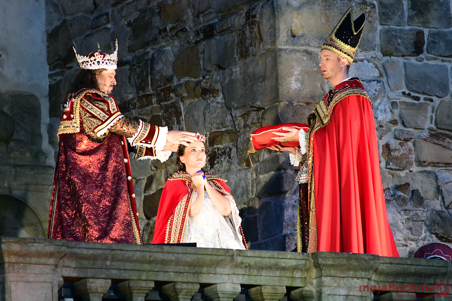 W niedzielę na dziedzińcu wiśnickiego zamku wystawiono operę „Bona Sforza”. Jest to opowieś o jedynej Włoszce zasiadającej na tronie polskim. Otrzymaliśmy tryptyk w dwóch aktach, w którym poznaliśmy Bonę jako młodą zakochaną w Hektorze dziewczynę, córkę księcia Bari. Księżniczkę, która po bolesnym wymuszonym rozstaniu z ukochanym trafia do dalekiego kraju, aby poślubić owdowiałego króla wielkiego państwa o zupełnie innej kulturze, z którym wiąże swoje dalsze losy. W końcu obejrzeliśmy Bonę – wdowę po sędziwym królu, która próbuje swoje marzenia i ambicje względem syna – Zygmunta Augusta i władanej przez niego Rzeczpospolitej, wprowadzić w życie zmuszona do ustępstw, kompromisów, doświadczającej oskarżeń i intryg.