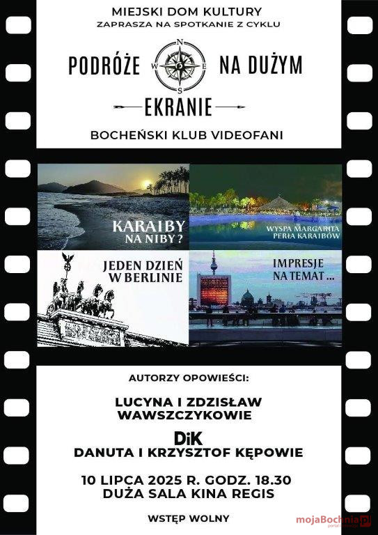 W najbliższy czwartek 10 lipca 2025 r. w dużej sali kina Regis odbędzie się projekcja kolejnych filmów z cyklu „Podróże na dużym ekranie”. Rozpoczęcie pokazu o godzinie 18.30.