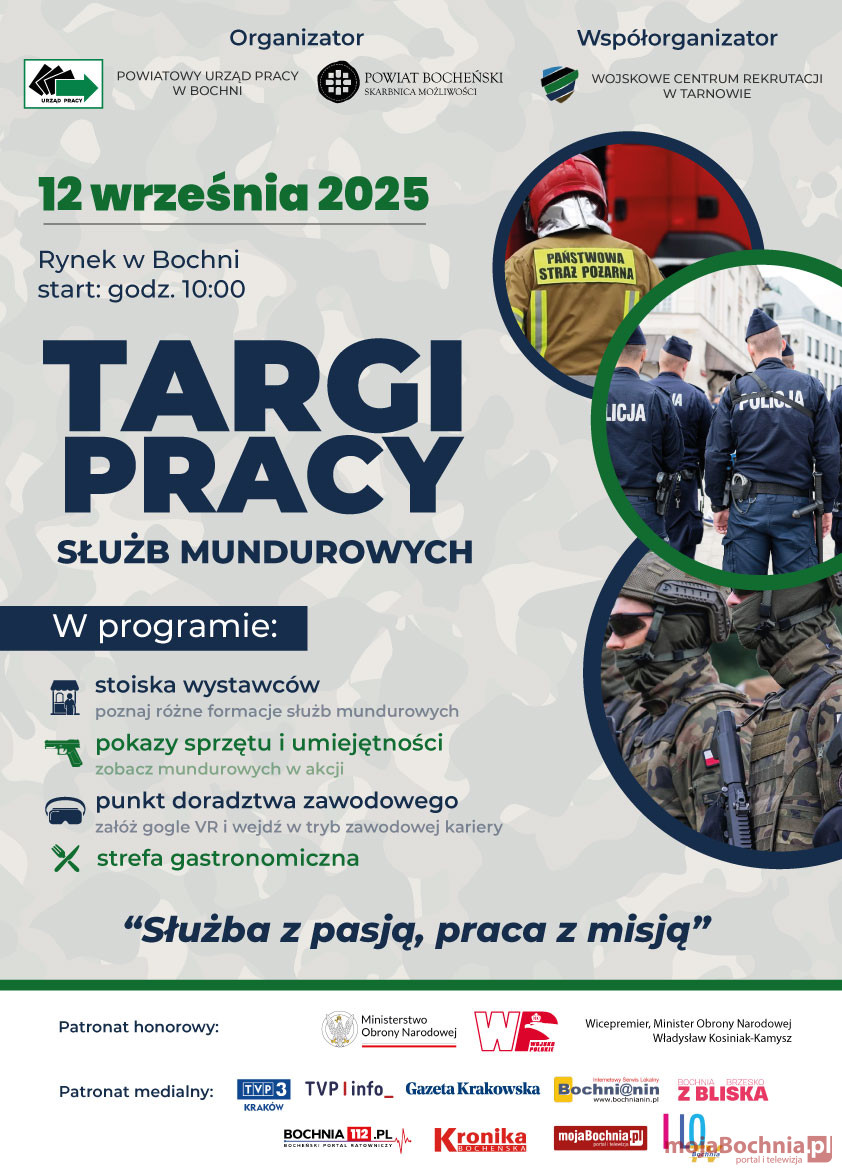 12 września o godzinie 10:00 Rynek w Bochni zamieni się w niezwykłe miejsce, gdzie marzenia o pracy w służbach mundurowych spotkają się z realnymi możliwościami.
