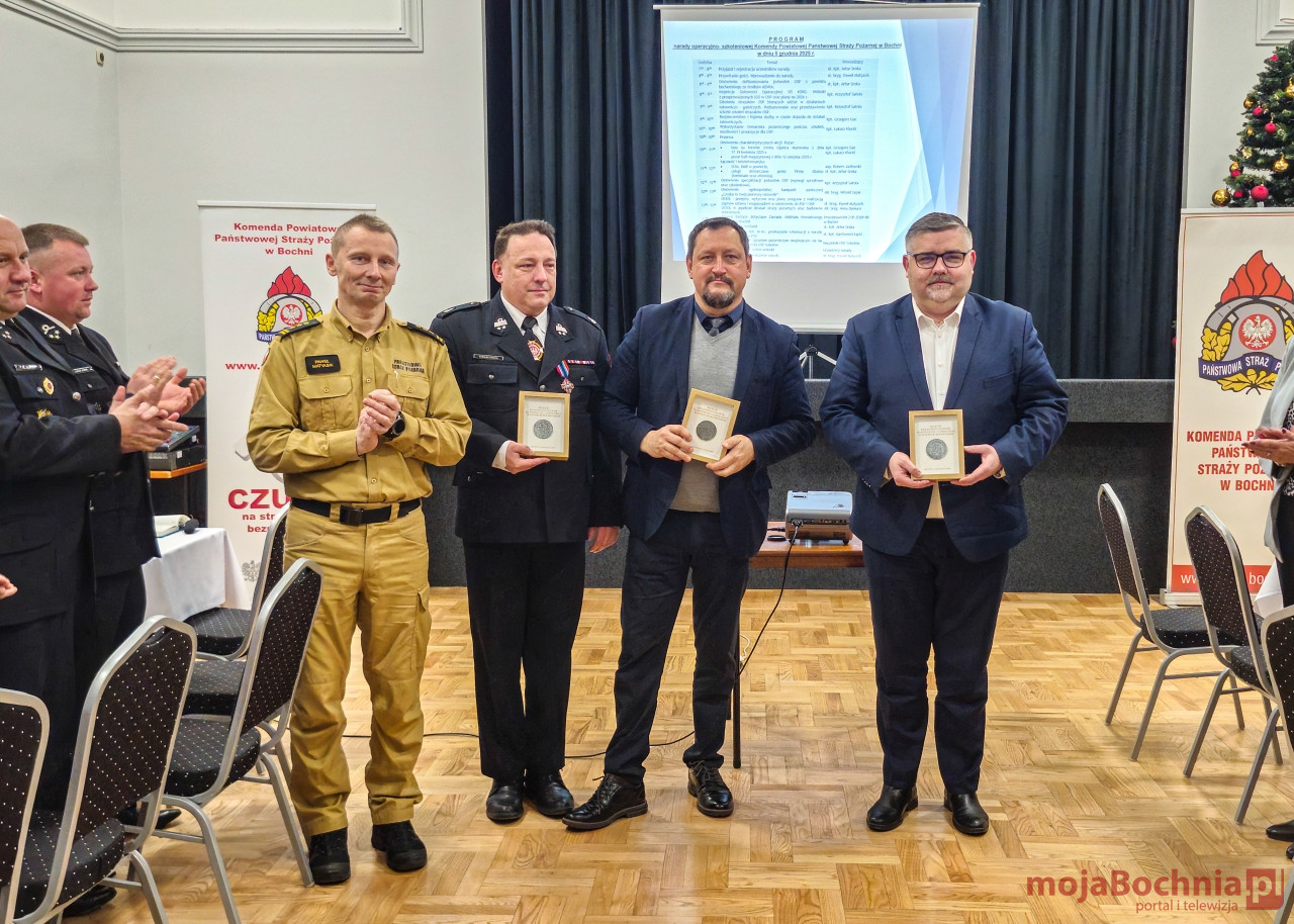 Podczas narady wręczono również okolicznościowe medale z okazji 30-lecia Krajowego Systemu Ratowniczo-Gaśniczego. W gronie uhonorowanych znaleźli się: Starosta Bocheński Adam Korta, Wicestarosta Ryszard Drożdżak i dh Tomasz Całka. Odznaczenia stanowiły wyraz uznania dla wieloletniego zaangażowania i wkładu w rozwój systemu bezpieczeństwa na terenie powiatu.