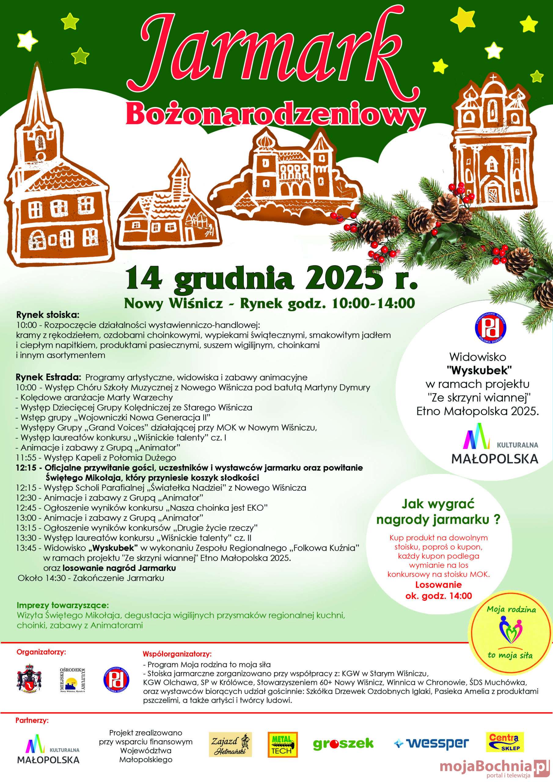 W najbliższą niedzielę odbędzie się w Nowym Wiśniczu tradycyjny jarmark bożonarodzeniowy. Jak co roku uczestnicy będą mogli skorzystać z licznych stoisk z rękodziełem, ozdobami choinkowymi, ale także ze smakowitym jadłem i napitkiem. Początek już od 10.00