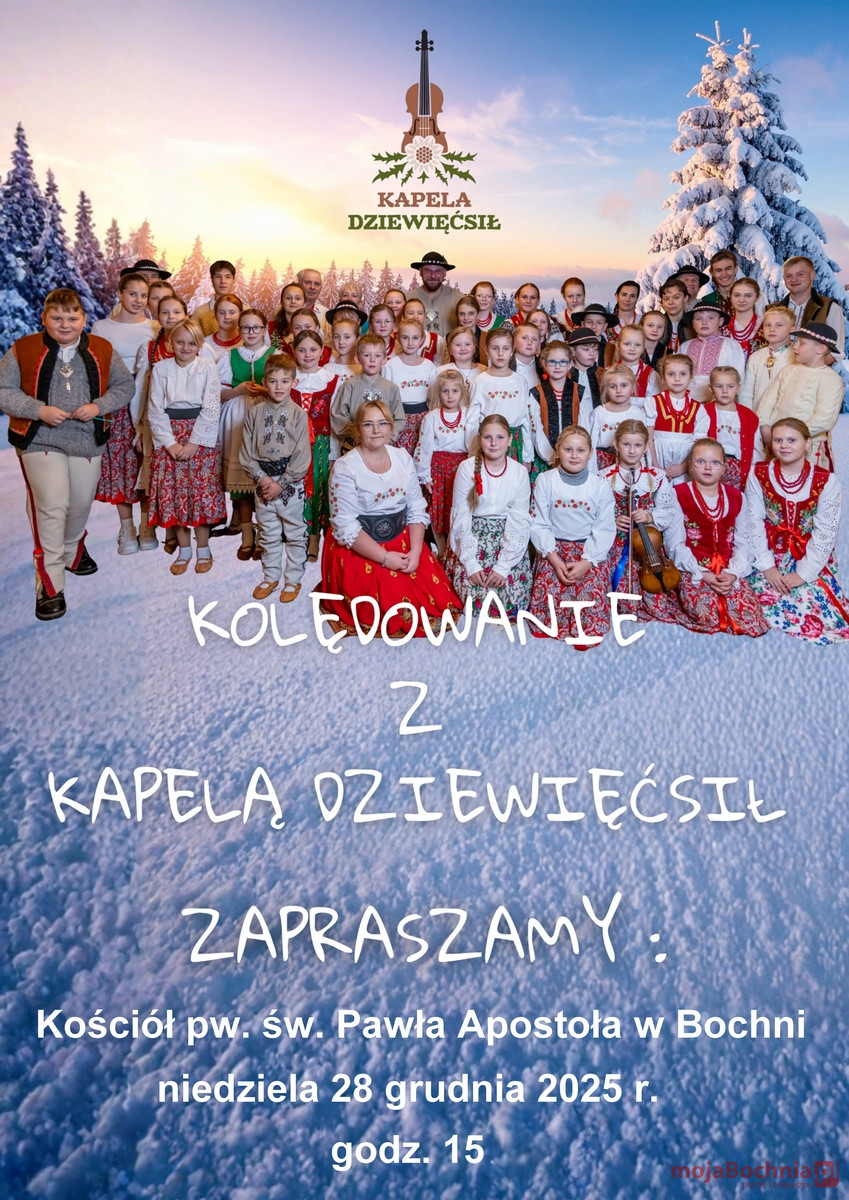 Ks. Leszek Rojowski, proboszcz parafii pw. św. Pawła Apostoła, zaprasza na wyjątkowe wydarzenie muzyczne – świąteczny koncert kolęd i pastorałek w wykonaniu góralskiego zespołu muzycznego „Dziewięćsił” z Czarnej Góry (powiat tatrzański).