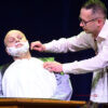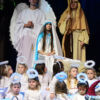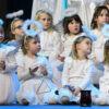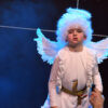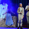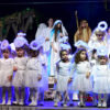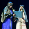 Ponad dwugodzinny spektakl składał się z kilku części oddzielonych od siebie emitowanymi na ekranie kilkuminutowymi filmami przedstawiającymi elementy tradycyjnego kolędowania. Filmy nagrano w Starym Wiśniczu, w Ośrodku Edukacji Regionalnej. Jasełka w Kobylu przyzwyczaiły do rozmachu. W przeszłości unosiła się nad sceną przebrana za anioła obecna burmistrz Małgorzata Więckowska (tym razem wystąpiła jako Królowa Śniegu)- w niedzielny wieczór po raz kolejny podziwialiśmy aniołki zajmujące miejsce ponad głowami aktorów. Ale rozmach był widoczny w ciekawej fabule, w której wplecione były wątki literatury dziecięcej, czy też dźwięki płynące z dziecięcego chóru, czy też towarzyszącej im formacji z instrumentami. Mieliśmy taniec, śpiew, grę świateł, piękne, dopracowane stroje. Warto było odwiedzić halę sportową przy szkole w Kobylu, aby …. zresztą zapraszamy do obejrzenia zdjęć.
