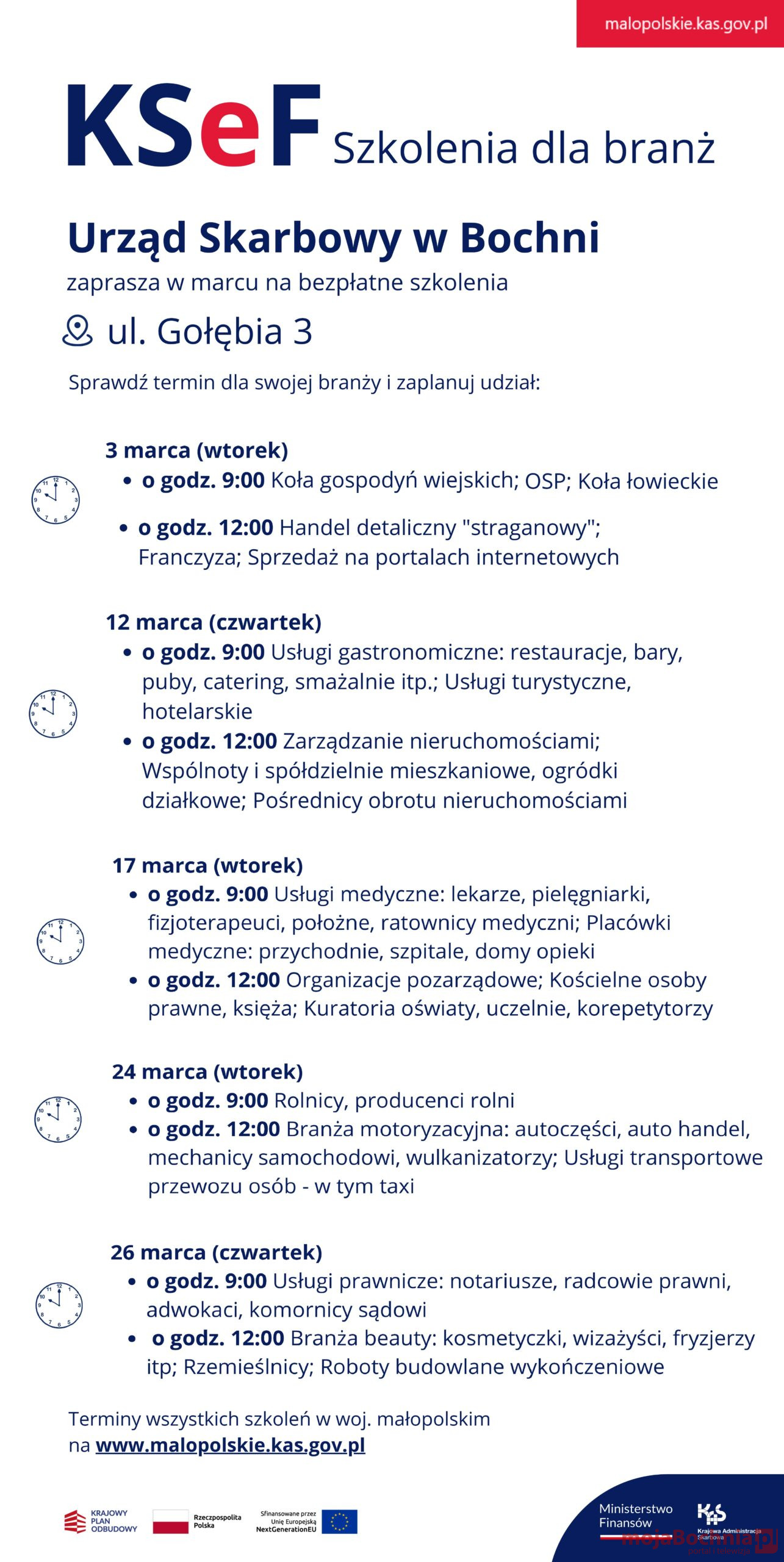 W Urzędzie Skarbowym w Bochni szkolenia będą realizowane stacjonarnie wg określonego podziału.
