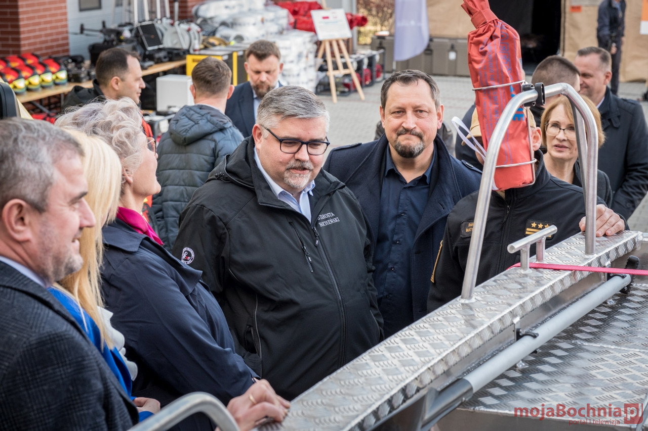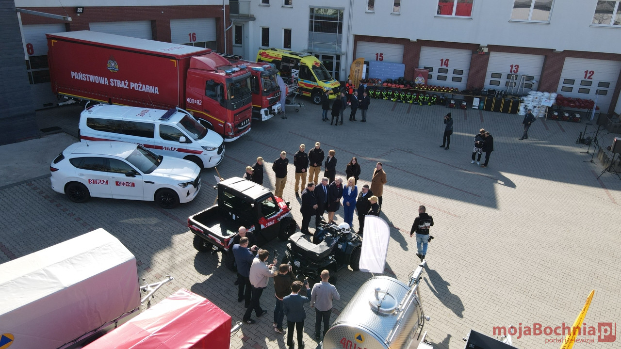 Z kolei Komenda Powiatowa Państwowej Straży Pożarnej w Bochni została doposażona w nowe pojazdy ratownicze. Strażacy otrzymali mikrobusa do przewozu osób Ford Transit, samochód terenowy Mazda, średni samochód ratowniczo-gaśniczy Volvo z przyczepą do transportu wody pitnej oraz ciężki samochód specjalny kwatermistrzowski Volvo o napędzie 6×4 wyposażony w hydroklapę. Łączna wartość tych pojazdów to ponad 3,6 mln zł.