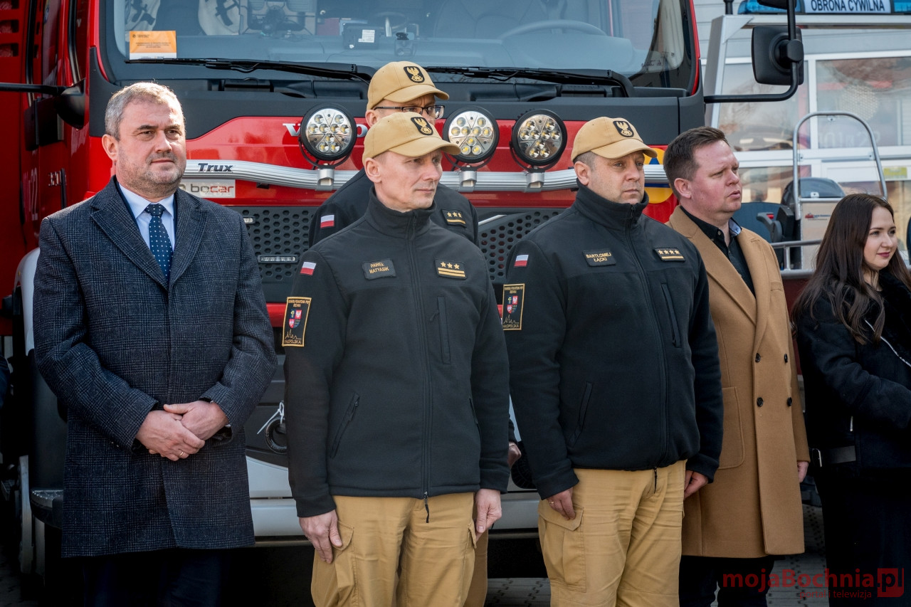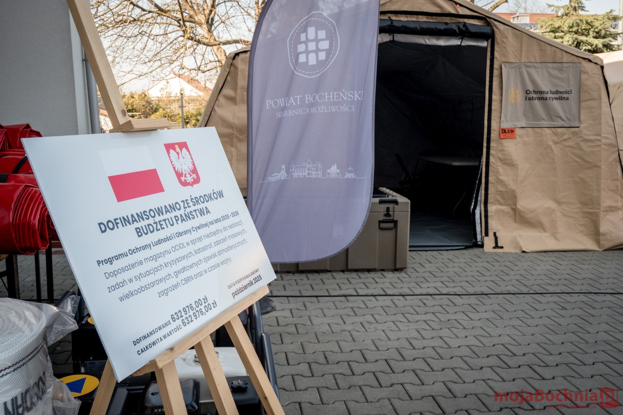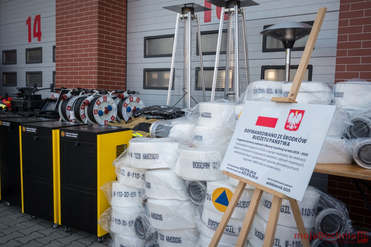 W Komendzie Powiatowej Państwowej Straży Pożarnej w Bochni odbyła się dziś oficjalna prezentacja sprzętu zakupionego w ramach Programu Ochrony Ludności i Obrony Cywilnej. Dzięki pozyskanym środkom służby z terenu Powiatu Bocheńskiego zostały doposażone w nowoczesne pojazdy i specjalistyczne wyposażenie, które zwiększy ich możliwości reagowania w sytuacjach zagrożenia. Łącznie do służb z Powiatu Bocheńskiego trafiło blisko 7 mln zł. Ponad 3,2 mln zł otrzymał bezpośrednio samorząd powiatowy, natomiast ponad 3,6 mln zł przeznaczono na doposażenie Komendy Powiatowej Państwowej Straży Pożarnej w Bochni w nowe pojazdy.
