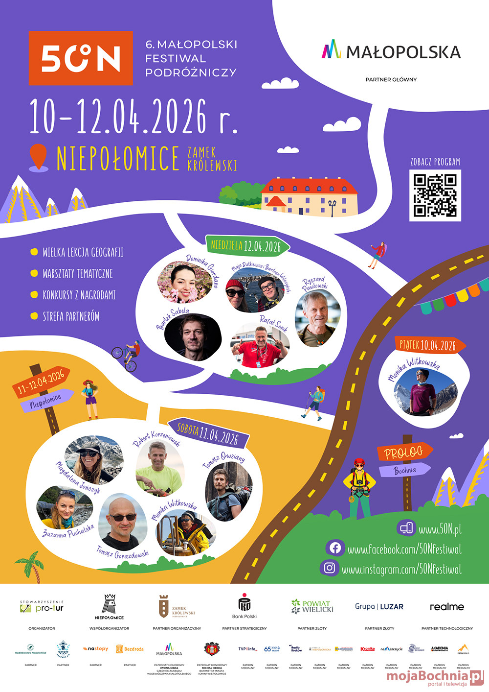 Już w piątek startuje 6. Małopolski Festiwal Podróżniczy 50°N. Impreza co roku przyciąga setki miłośników świata, inspirujących historii i spotkań z ludźmi o niezwykłych doświadczeniach. Tegoroczna edycja odbędzie się w dniach 10 – 12 kwietnia i zapowiada się wyjątkowo.