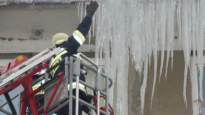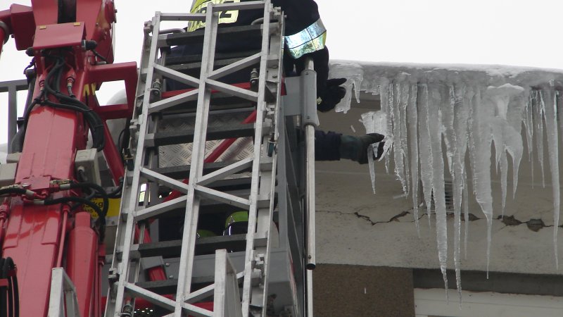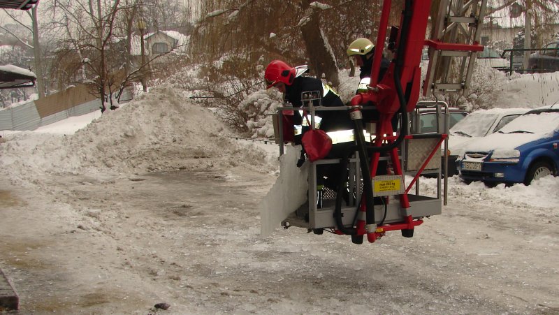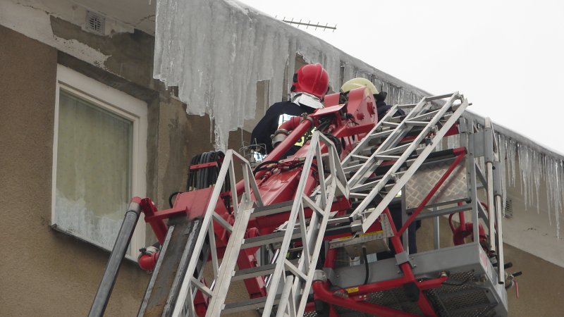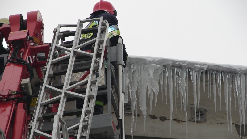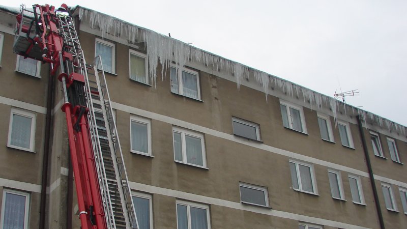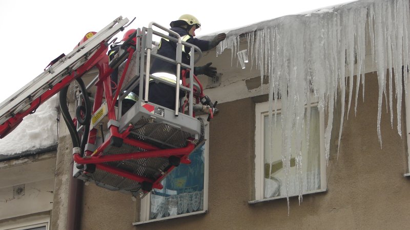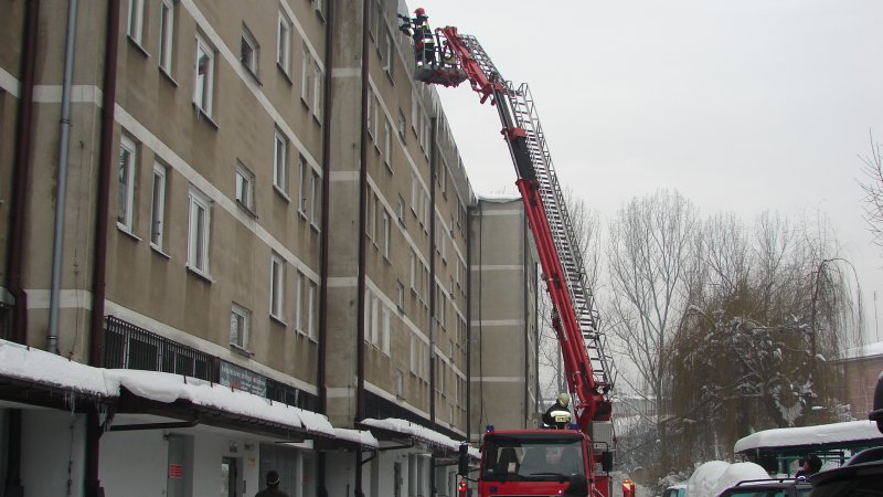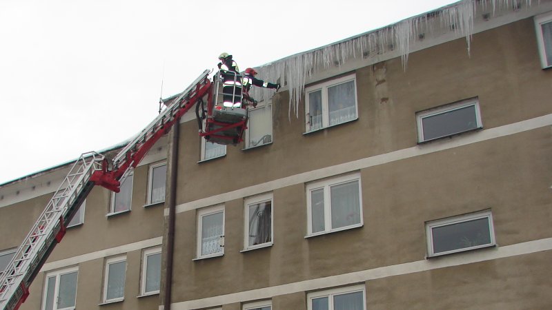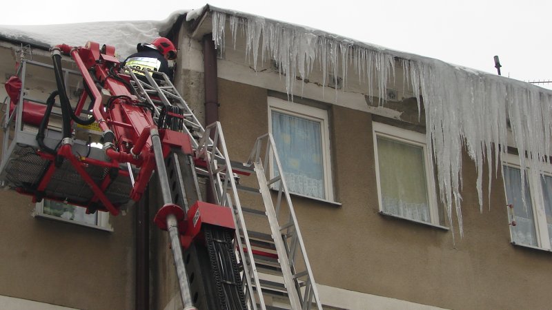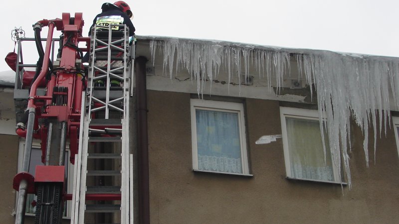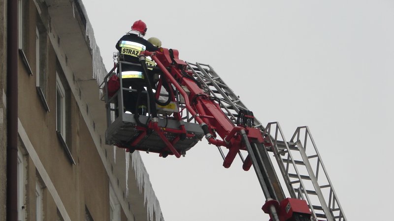 strażacy mają piękną drabinę, ale sople odrywaja rękoma bo nie wiedza co to bosak !!
