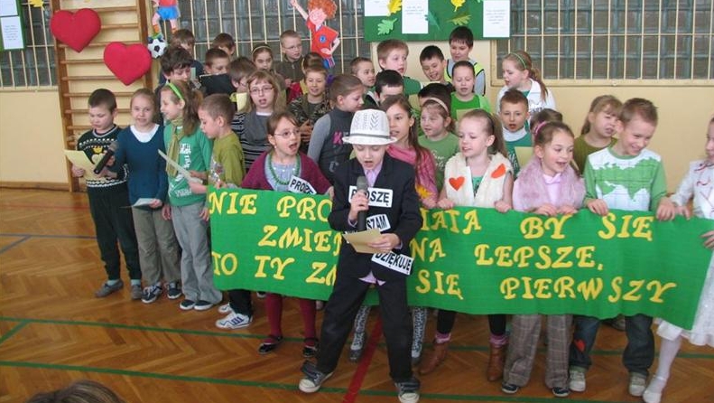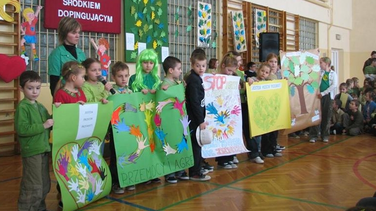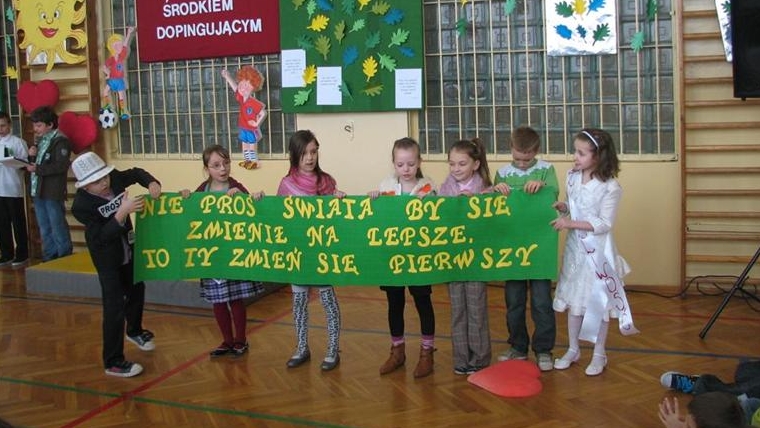 Klasy VI: „Nie pije nie palę i lepszym się staję”, „Nie kłuć się kolego, to nic dobrego”. „My przemocy się nie damy, na zielono się ubieramy”.
