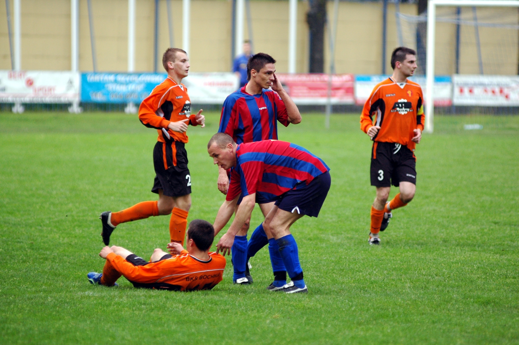 Nie minęły jednak dwie minuty, a bohater Orła musiał opuścić boisko z powodu drugiej żółtej kartki. Bocheński KS miał blisko pół godziny, aby uzyskać korzystny rezultat. Nie udało się. Przez długie minuty bochnianie razili nonszalancją w rozgrywaniu akcji. Denerwowały straty, niecelne podania, z czego korzystali goście, którzy skutecznie przerzucali ciężar gry na połowę gospodarzy.